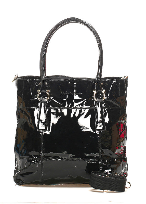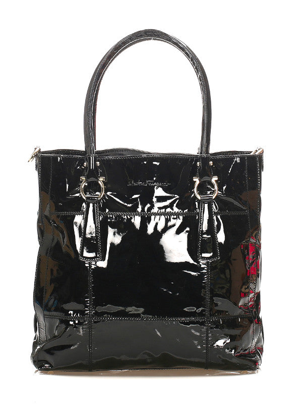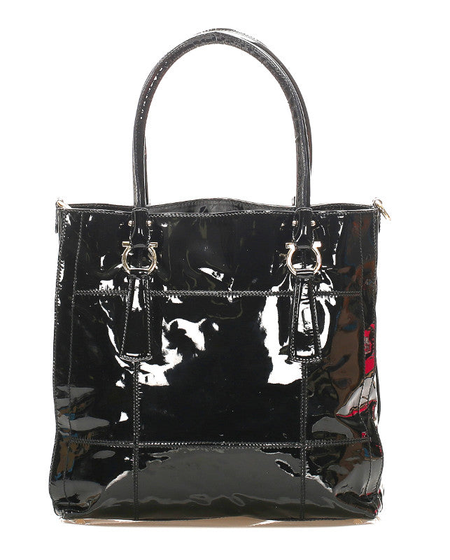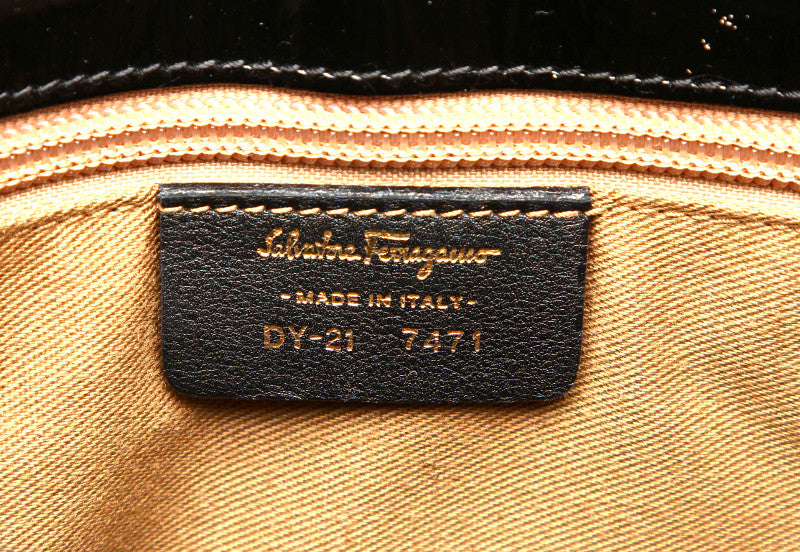 サルヴァトーレフェラガモ ガンチーニ DY-21 7471 ブラック 黒 エナメル ハンドバッグ ショルダーバッグ 2WAY レディース Salvatore Ferragamo 中古