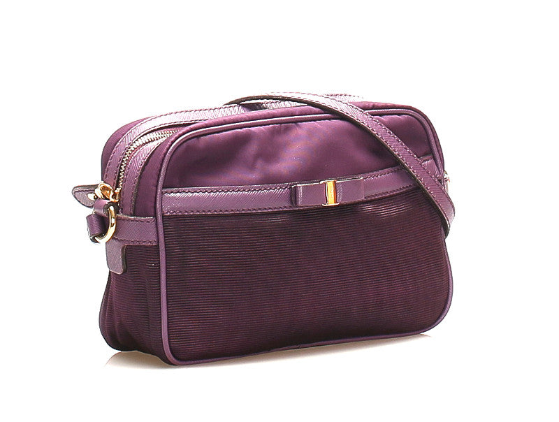 サルヴァトーレフェラガモ ヴァラリボン AU-21/0172 パープル ナイロン ショルダーバッグ レディース Salvatore Ferragamo 中古