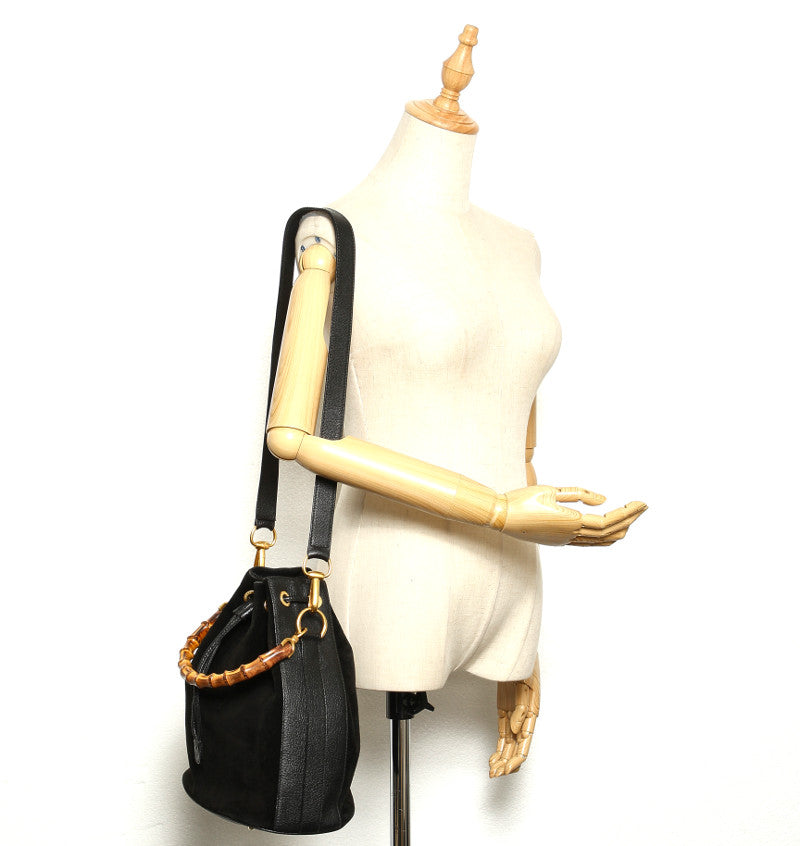 グッチ バンブー 001 2040 657 ブラック 黒 レザー スウェード ショルダーバッグ レディース GUCCI 中古