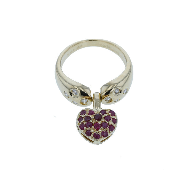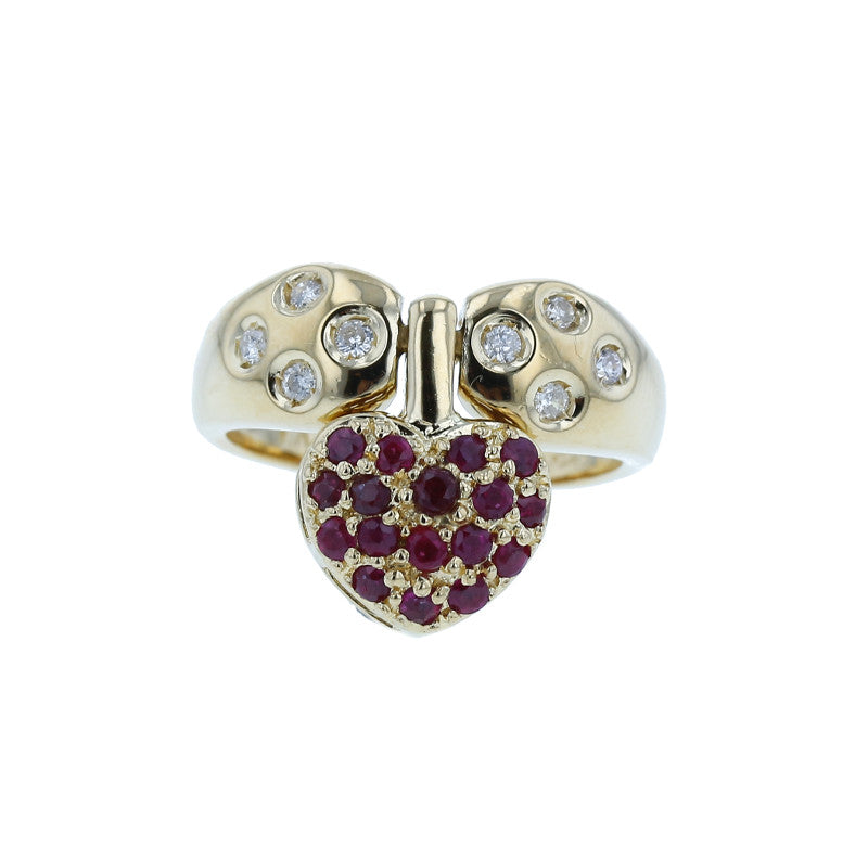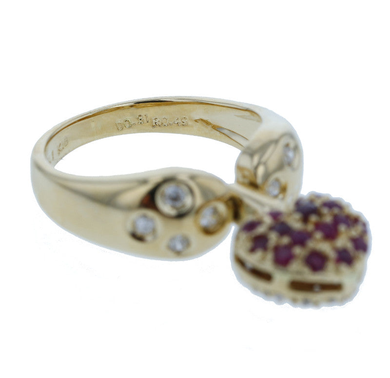 K18 ゴールド ルビー0.49ct ダイヤ0.31ct ハートモチーフ 2WAY リング 指輪 レディース 10号 中古