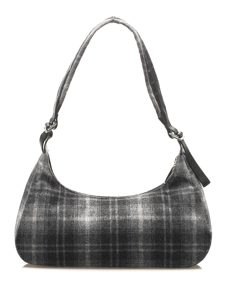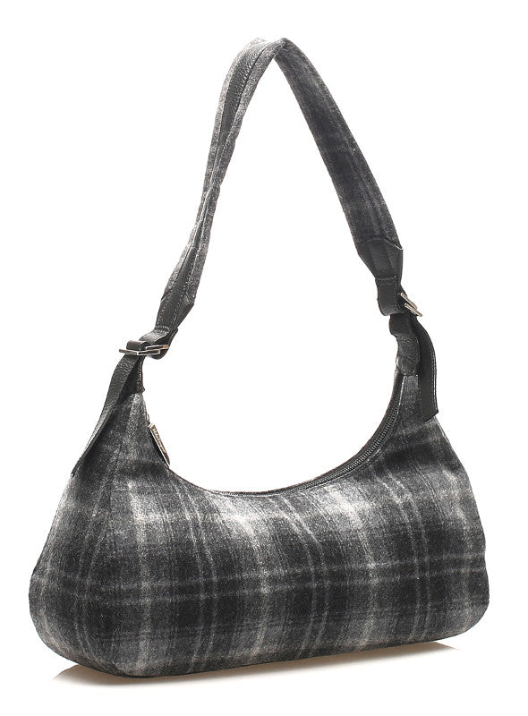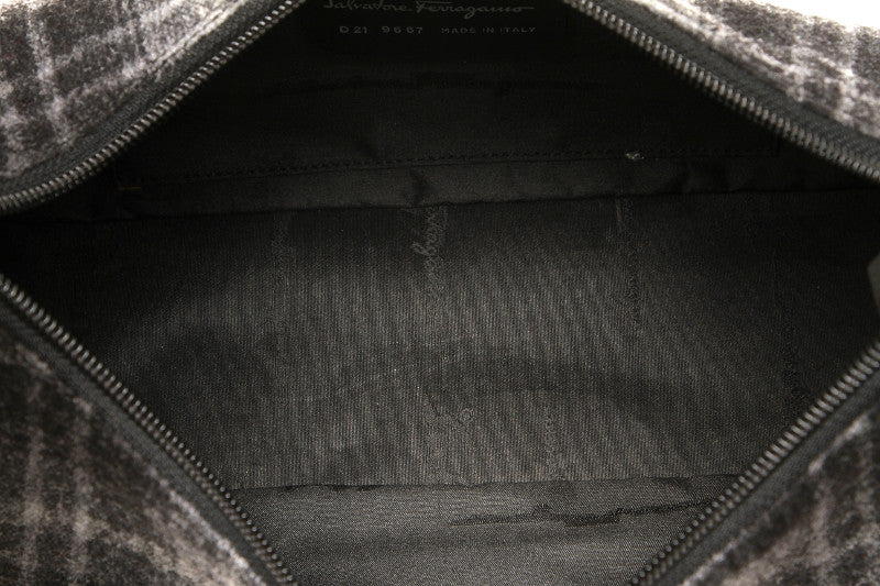 サルヴァトーレフェラガモ チェック D21 9667 グレー ウール レザー 肩掛け ショルダーバッグ レディース Salvatore Ferragamo 中古