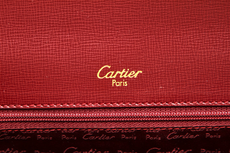 カルティエ マスト ワインレッド レザー ハンドバッグ レディース CARTIER 中古