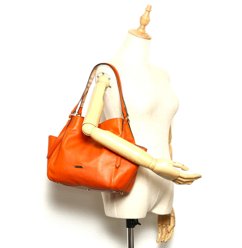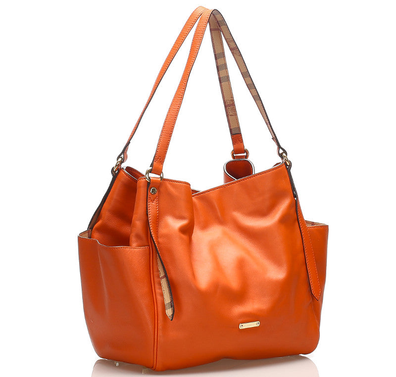 バーバリー オレンジ レザー ハンドバッグ レディース BURBERRY 中古