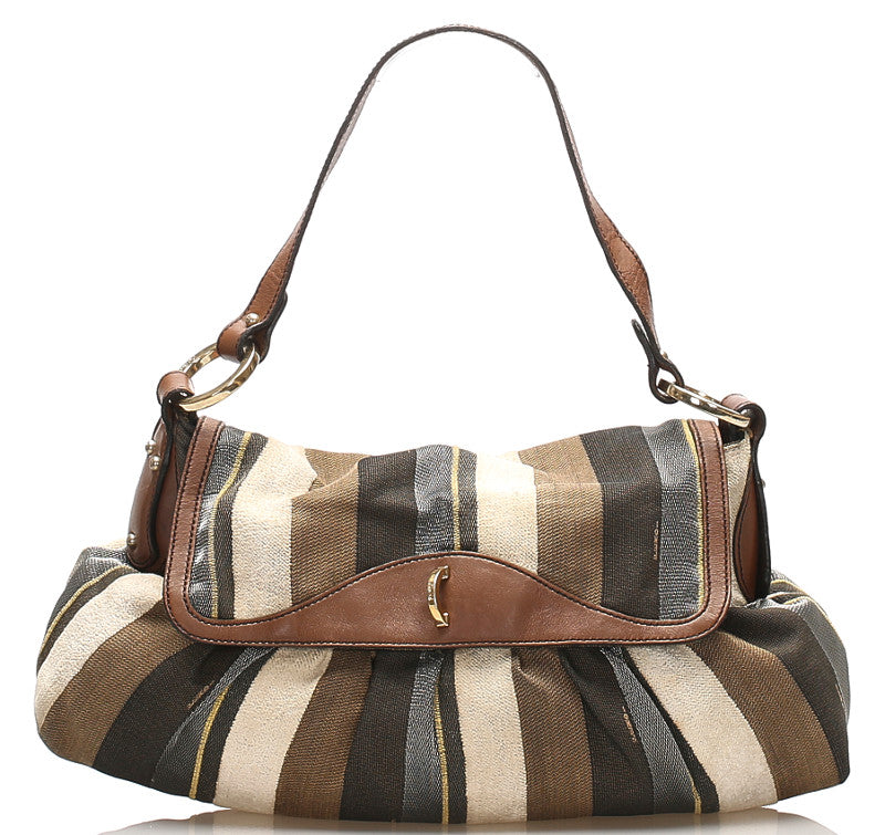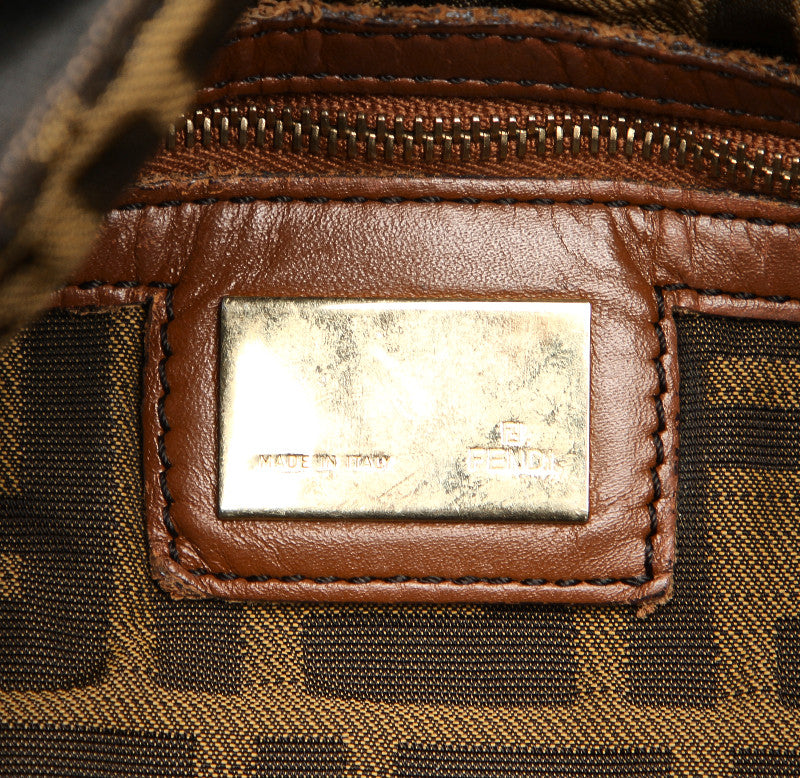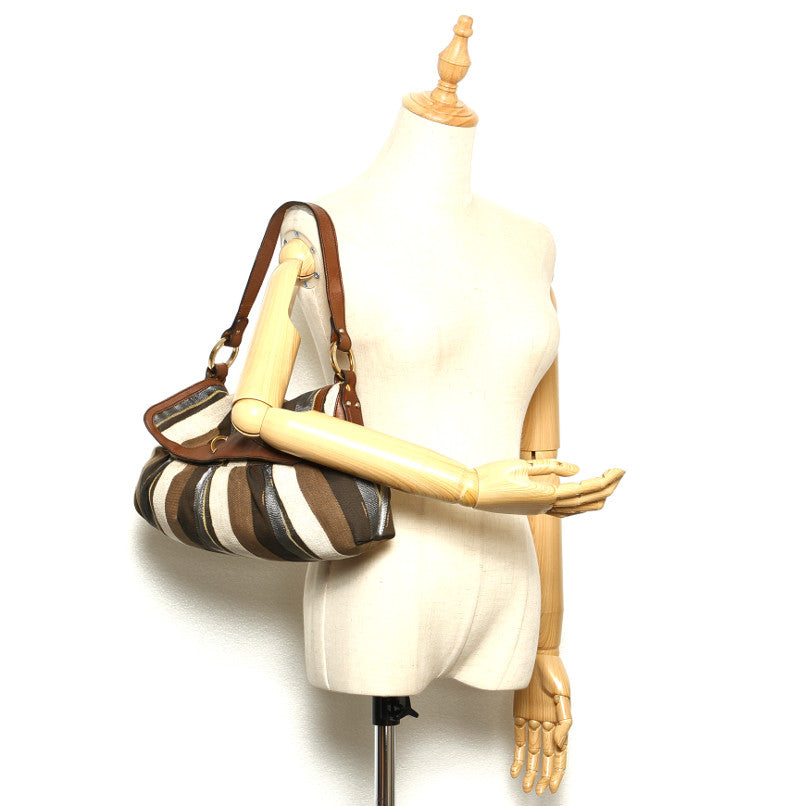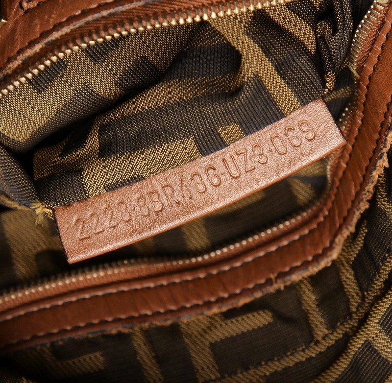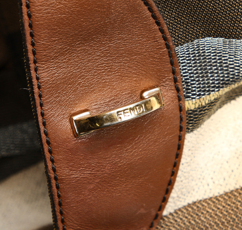 フェンディ カーキ ホワイト ブラウン キャンバス レザー ショルダーバッグ レディース FENDI 中古