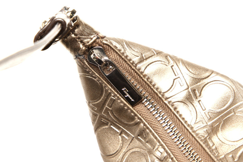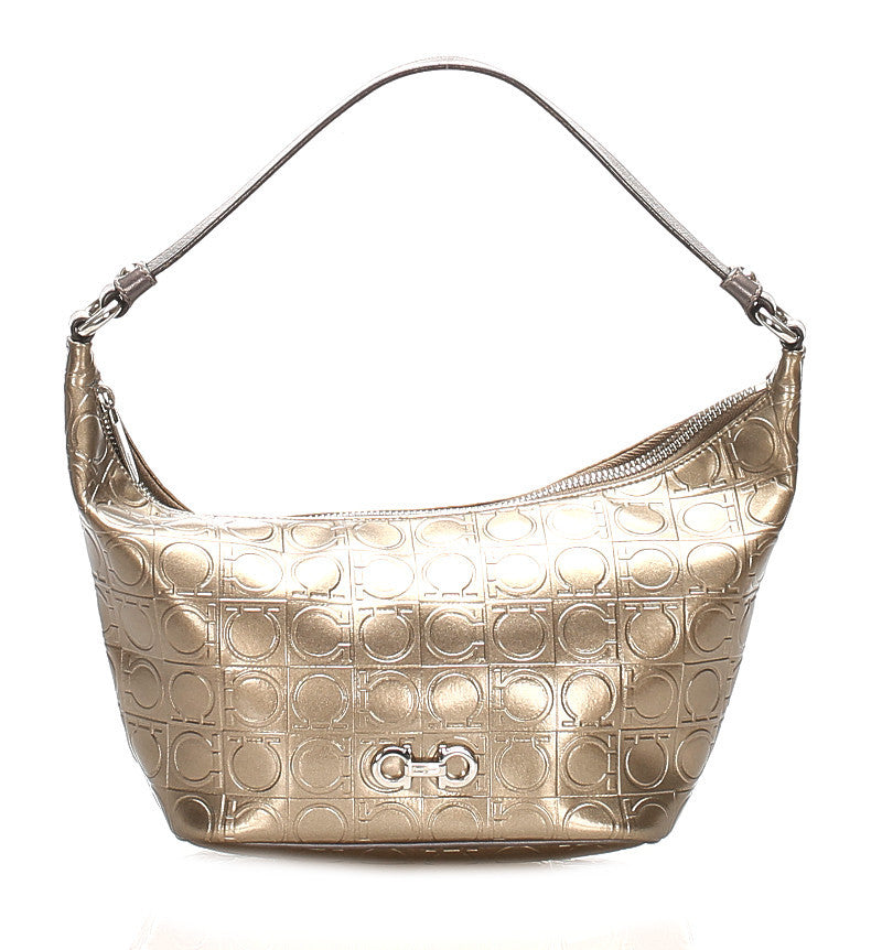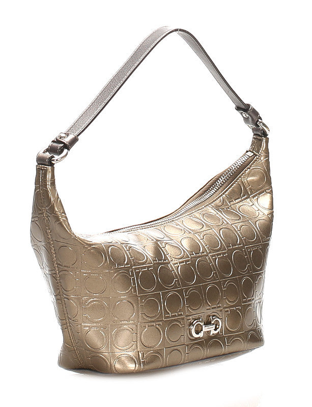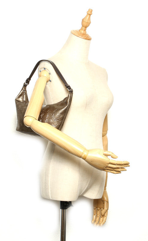 サルヴァトーレフェラガモ ガンチーニ AU-22 A831 ゴールド エナメル レザー ハンドバッグ レディース Salvatore Ferragamo 中古