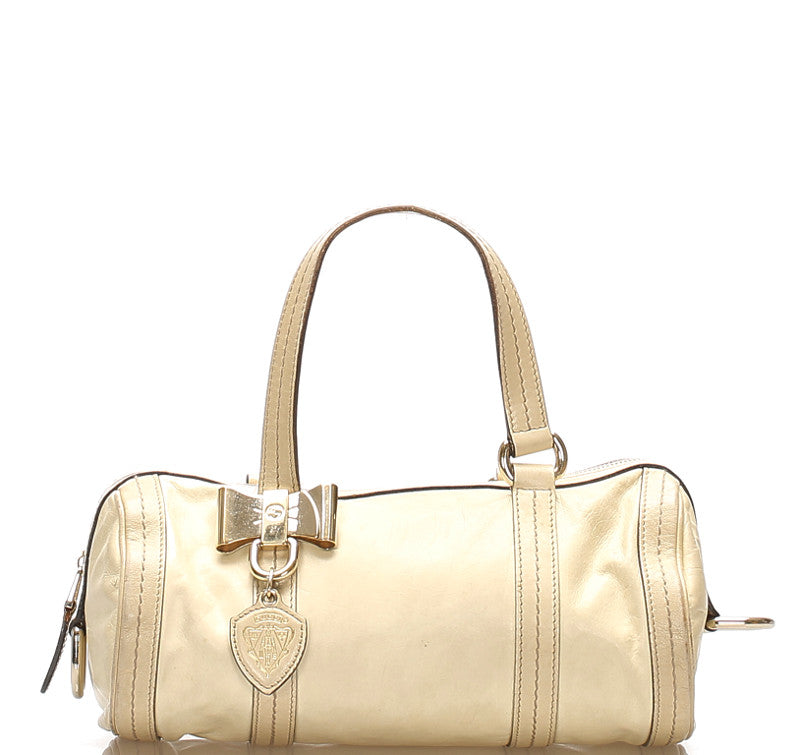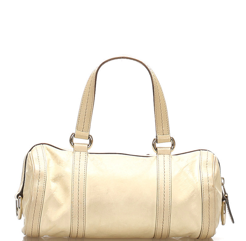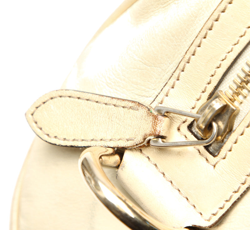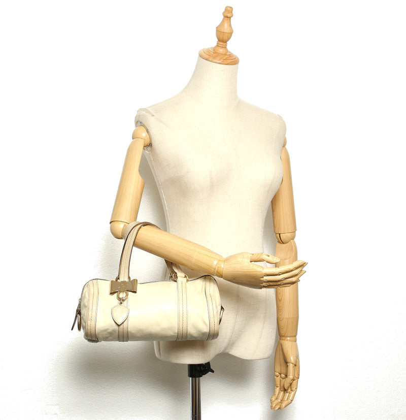 金具に小キズ・メッキハガレ、外側の所々にヨゴレ・スレ・ボンドジミ、ハンドルにスレ・ヨゴレ・ボンドジミ・コバにハガレ、底部に角スレはありますが、比較的キレイな商品です。 |