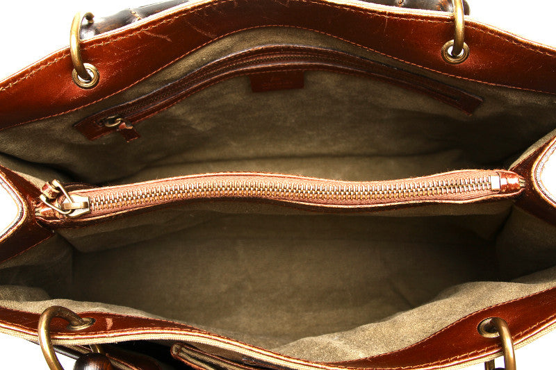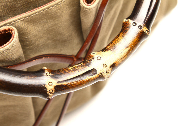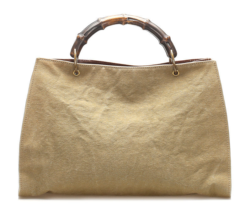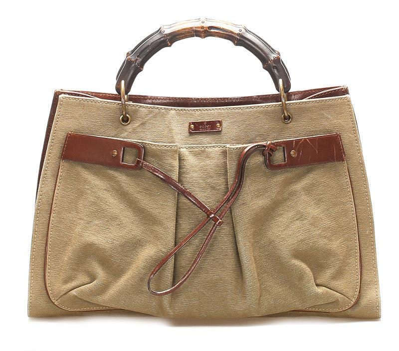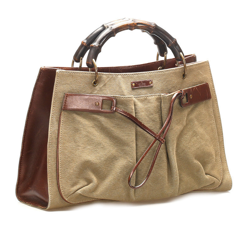 グッチ バンブー 109138 カーキ ブラウン キャンバス レザー ハンドバッグ レディース GUCCI 中古
