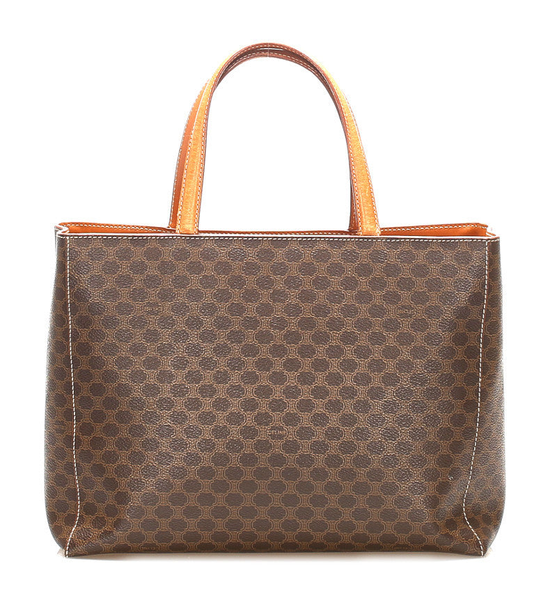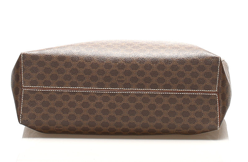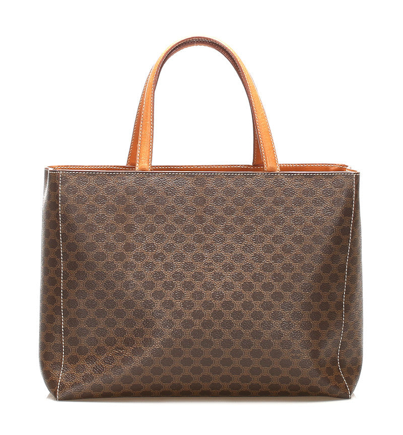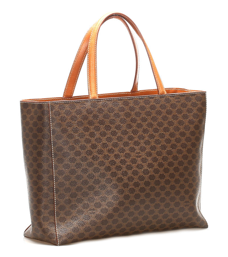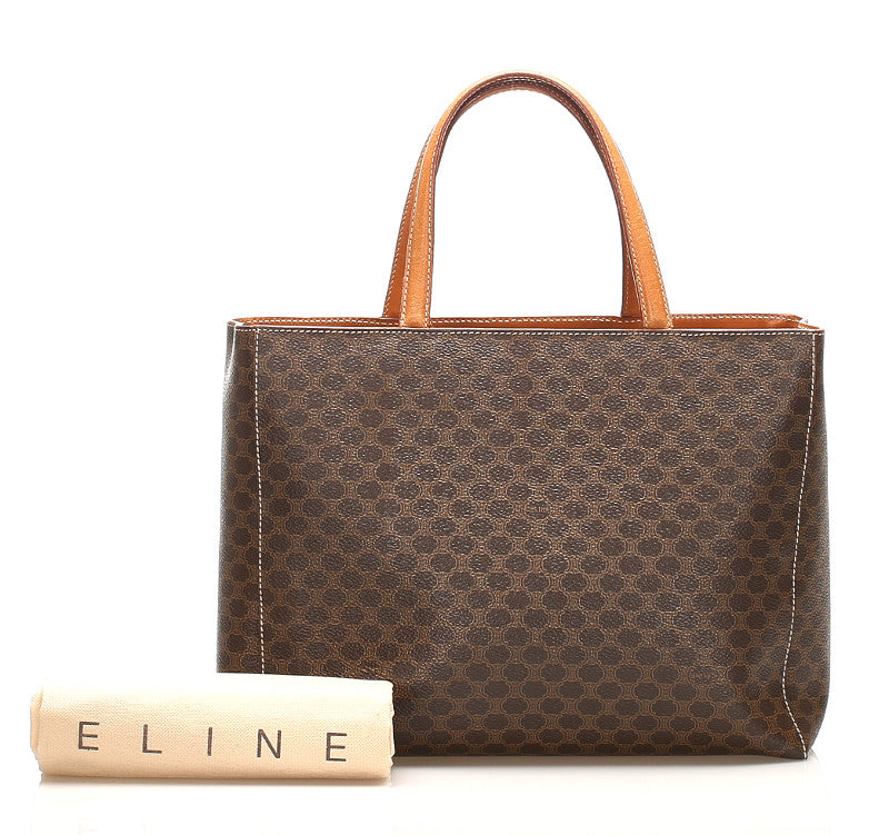 セリーヌ マカダム ブラウン PVC レザー トートバッグ レディース CELINE 中古