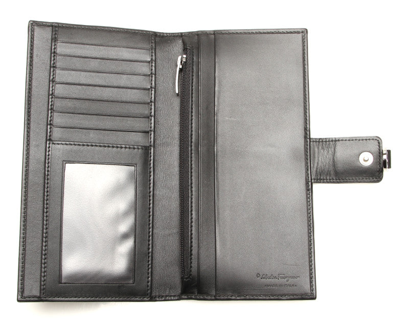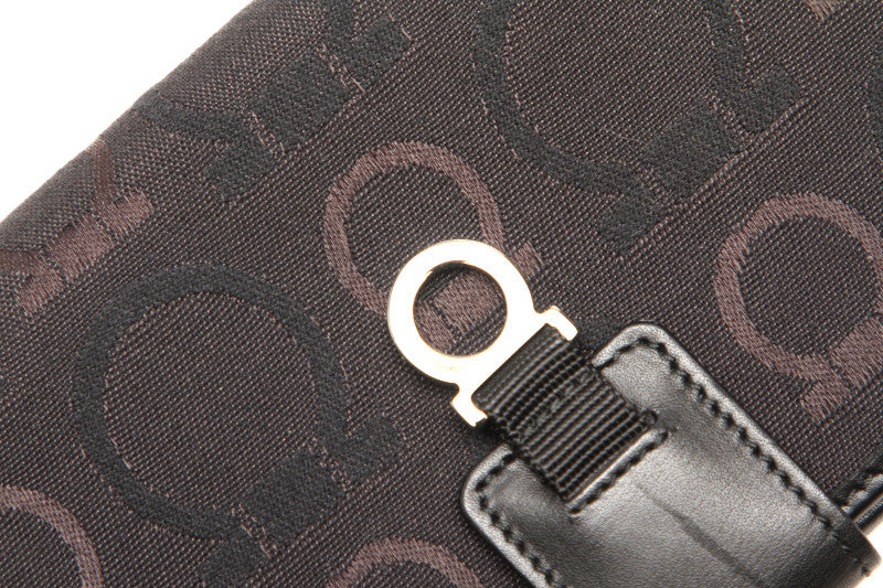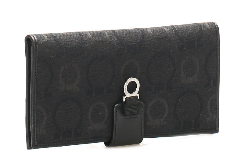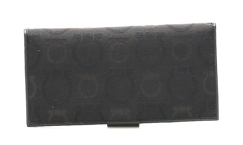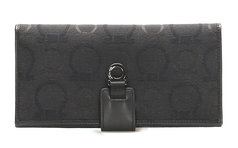 サルヴァトーレフェラガモ ガンチーニ ブラック キャンバス レザー 長財布 ユニセックス Salvatore Ferragamo 中古