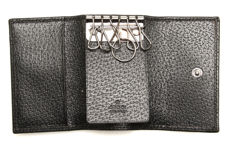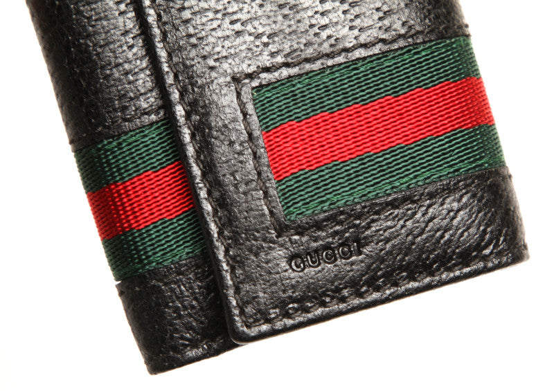 グッチ シェリーライン ブラック レザー キーケース ユニセックス GUCCI 中古