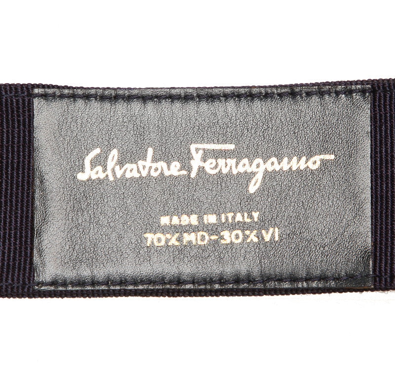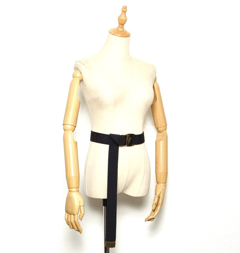 サルヴァトーレフェラガモ ヴァラ ネイビー ゴールド ナイロン レザー ベルト レディース Salvatore Ferragamo 中古
