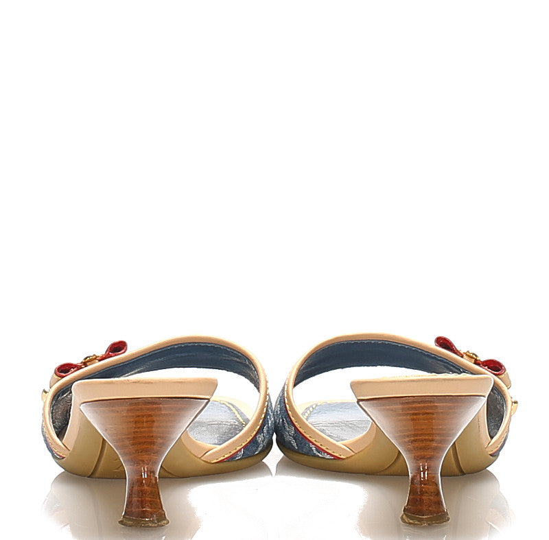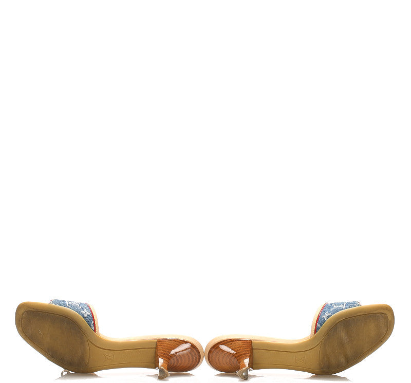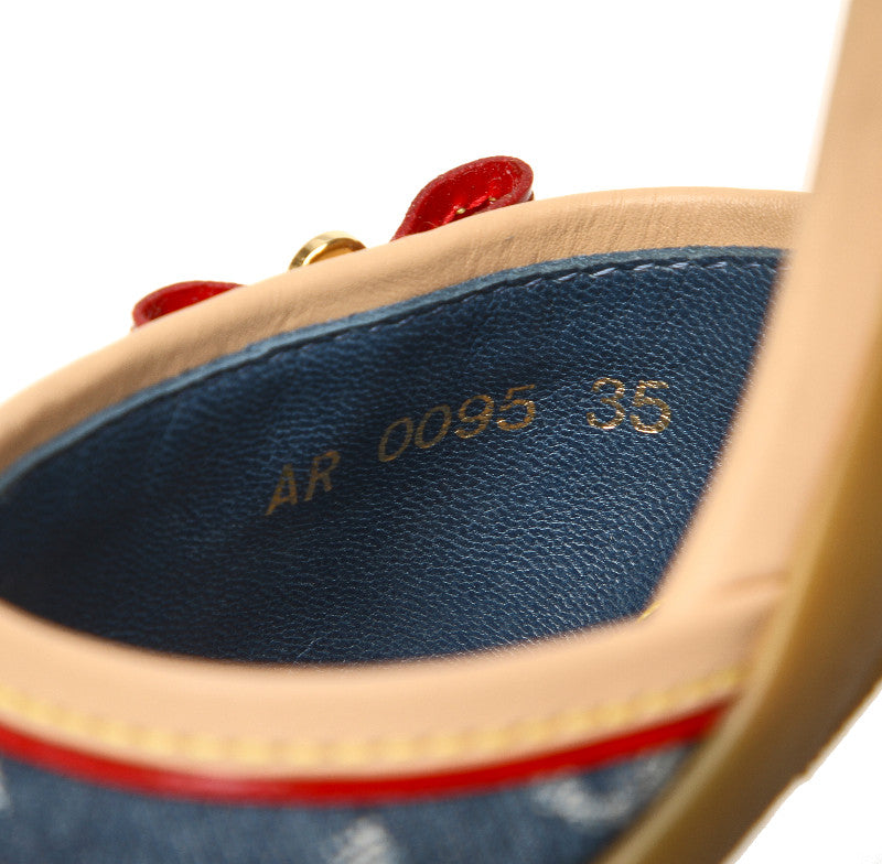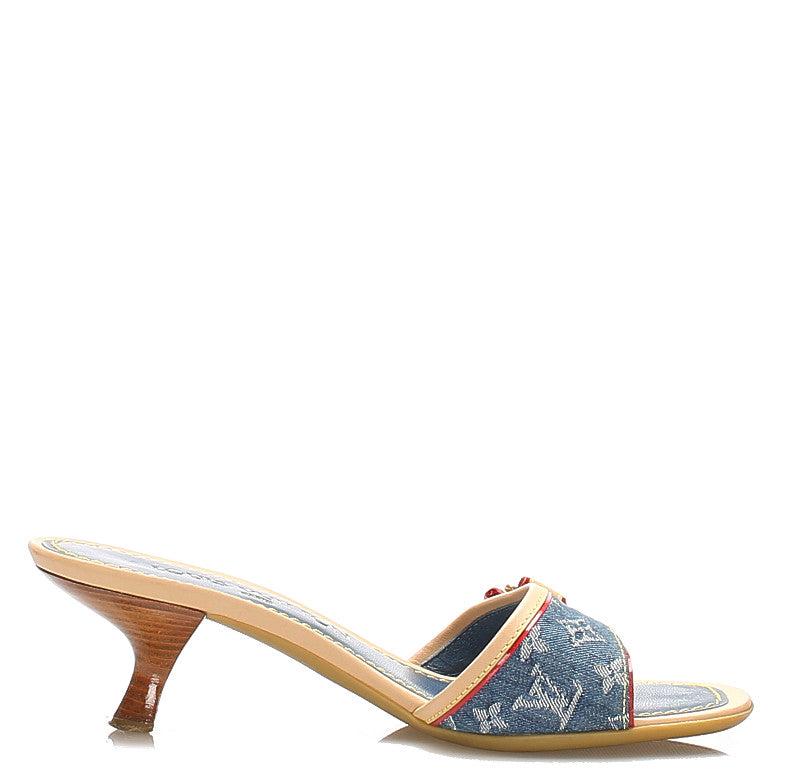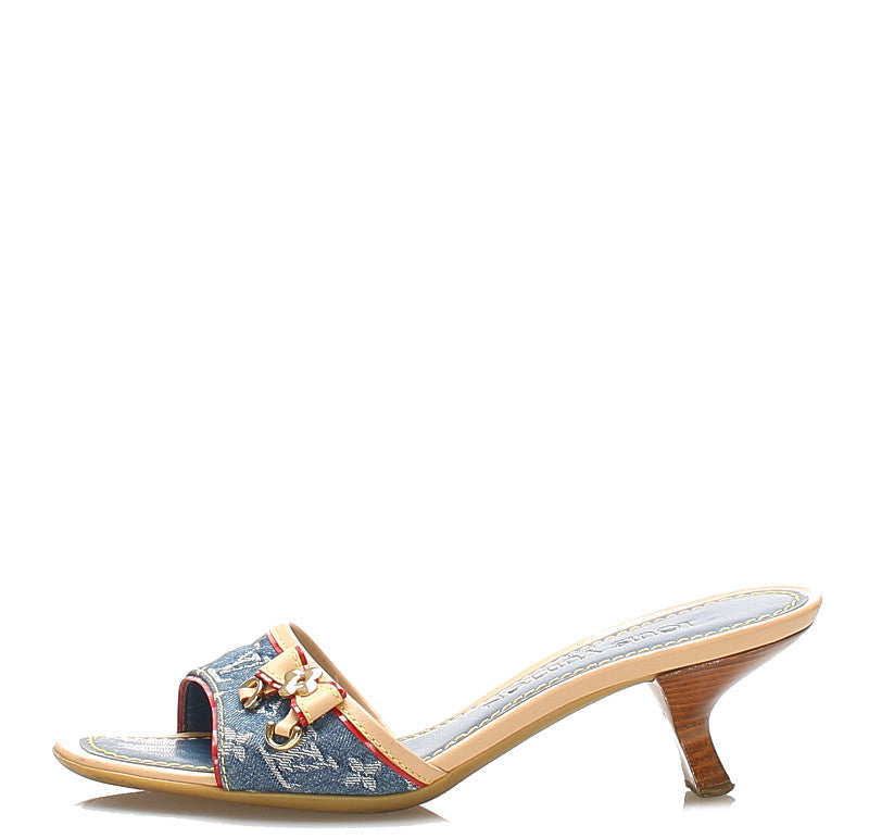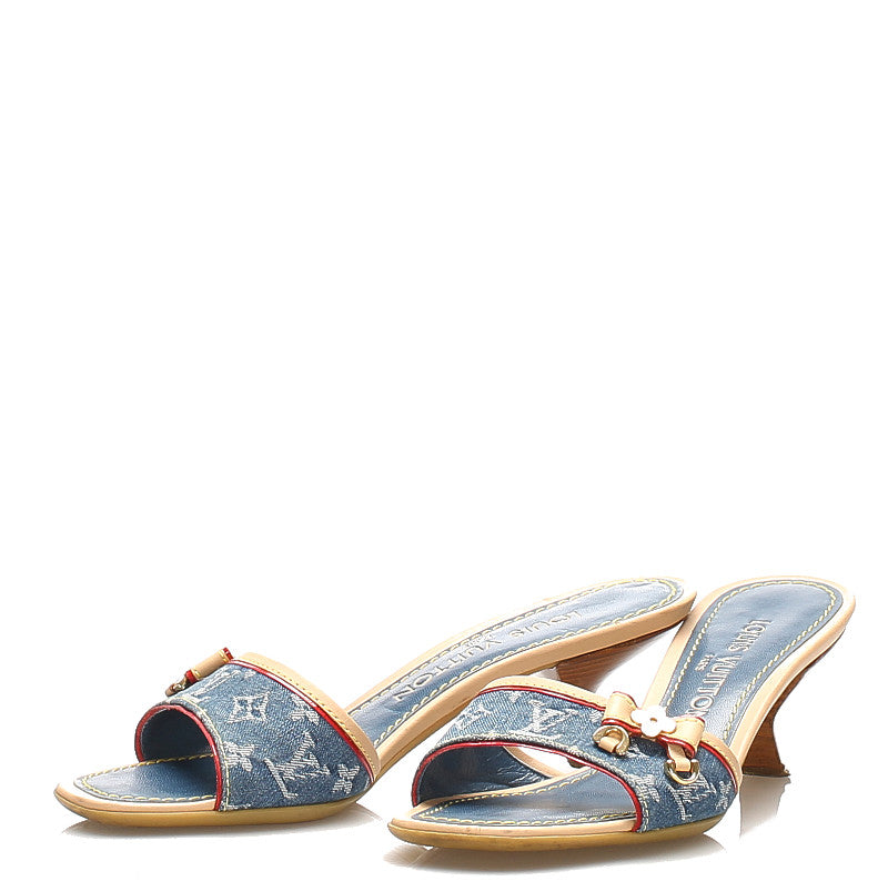 ルイ ヴィトン モノグラム リボン ブルー レザー デニム ミュール レディース LOUIS VUITTON 中古
