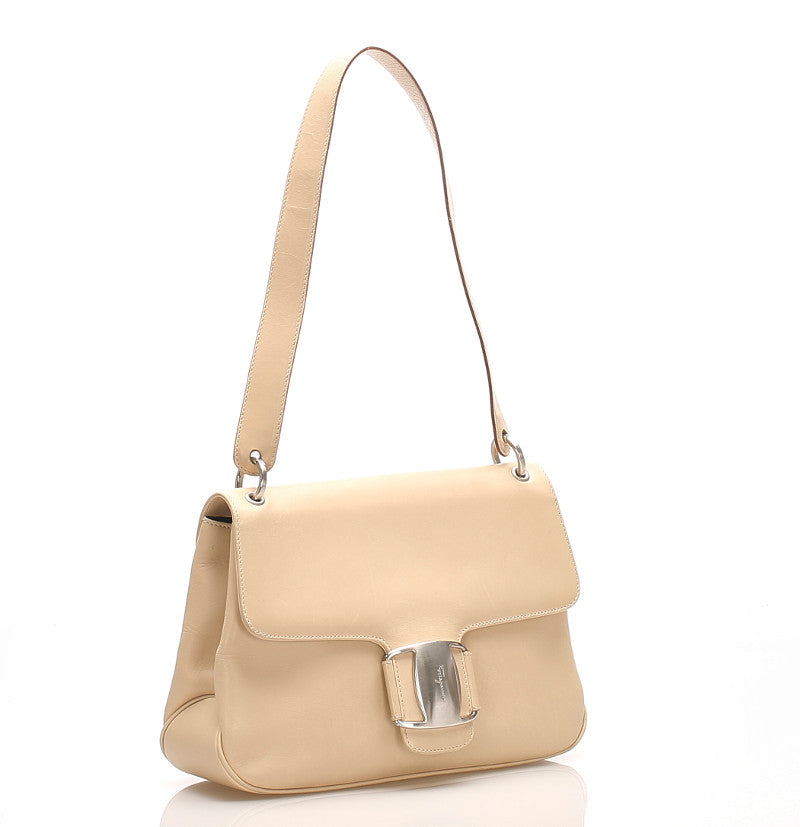 サルヴァトーレフェラガモ ヴァラ AQ-218691 ベージュ レザー ハンドバッグ レディース Salvatore Ferragamo 中古
