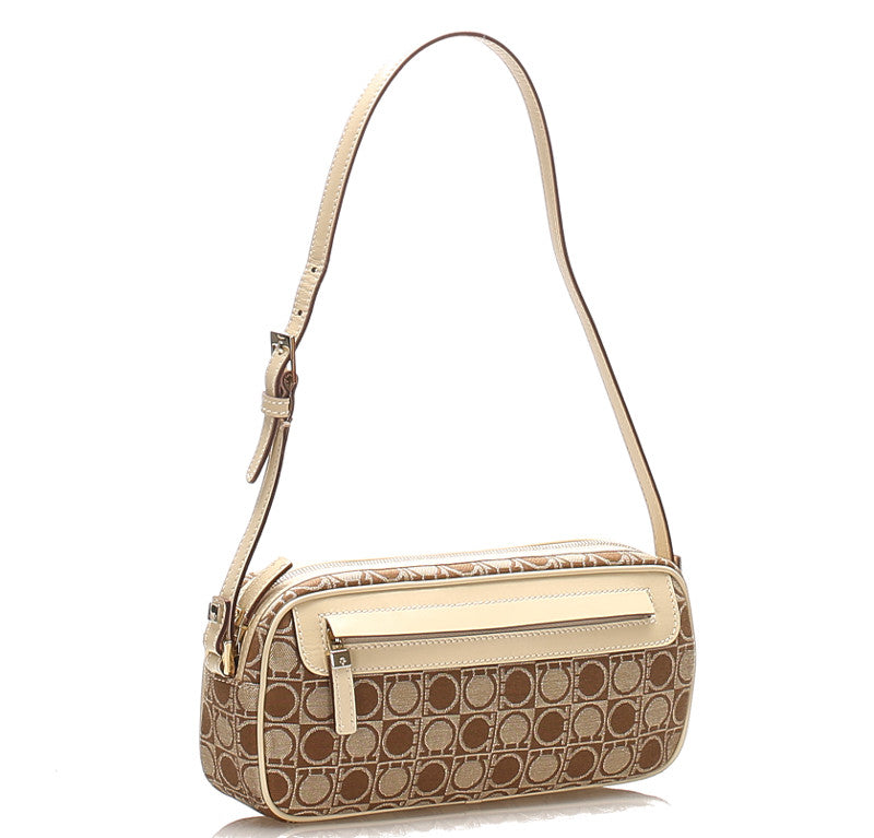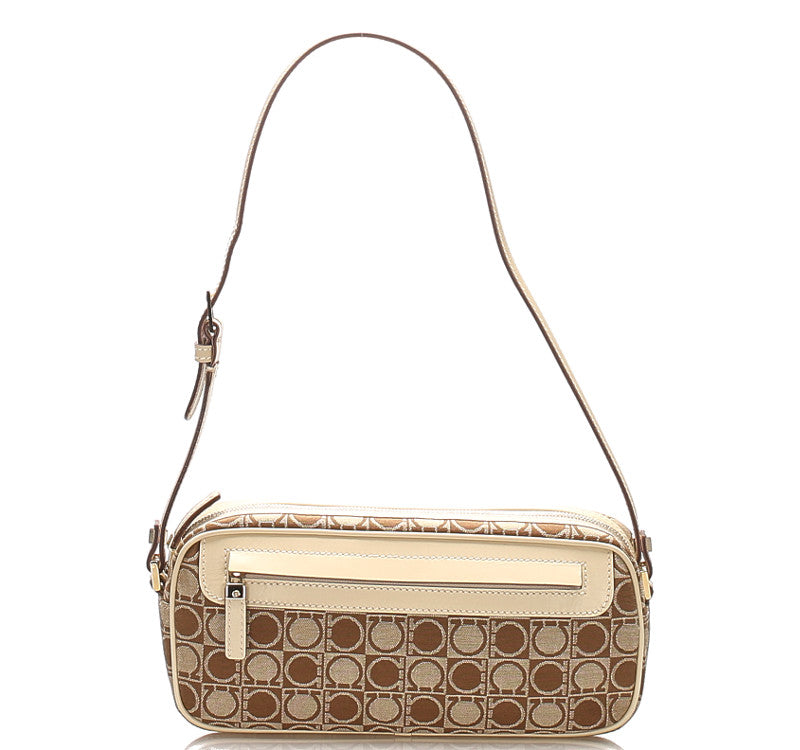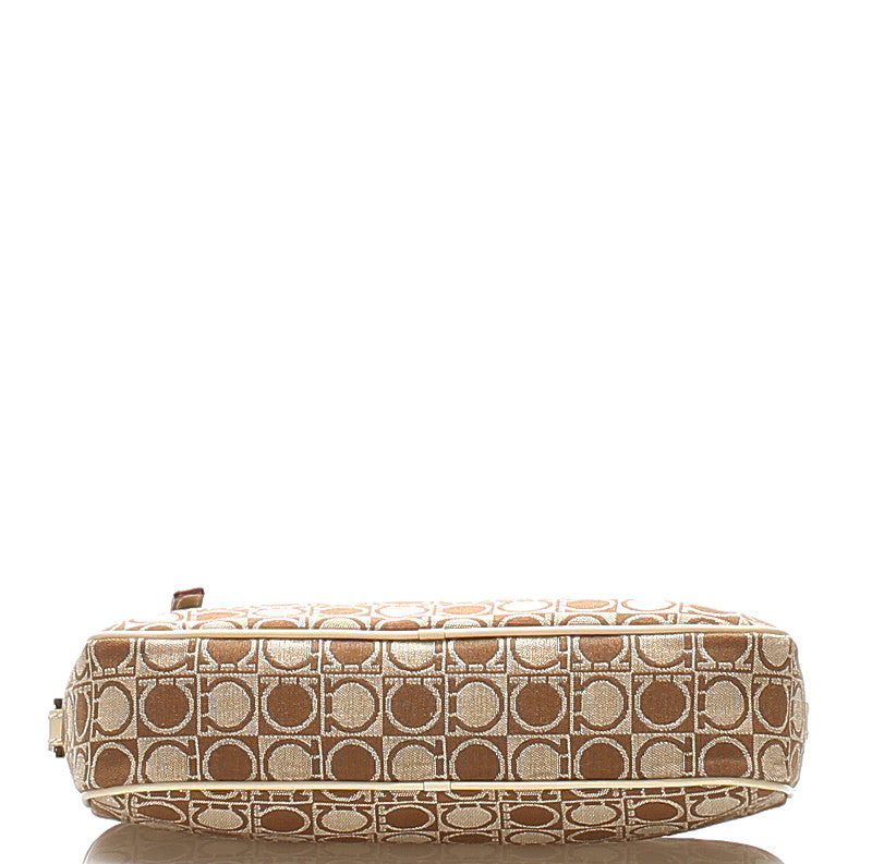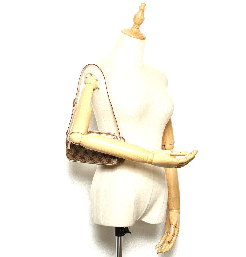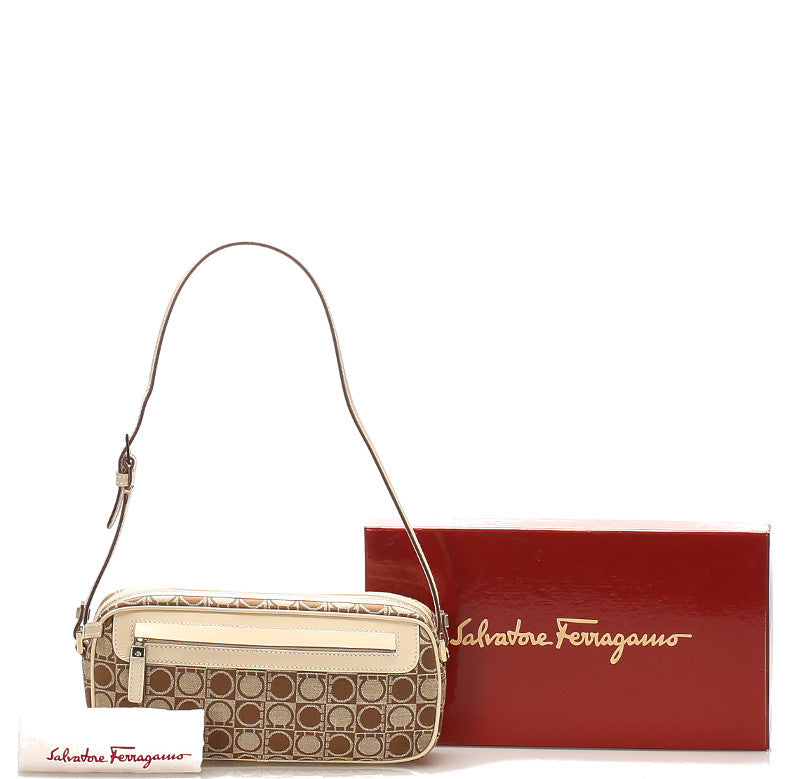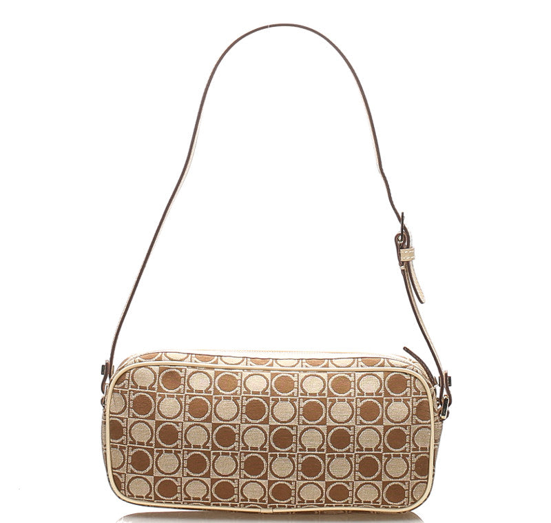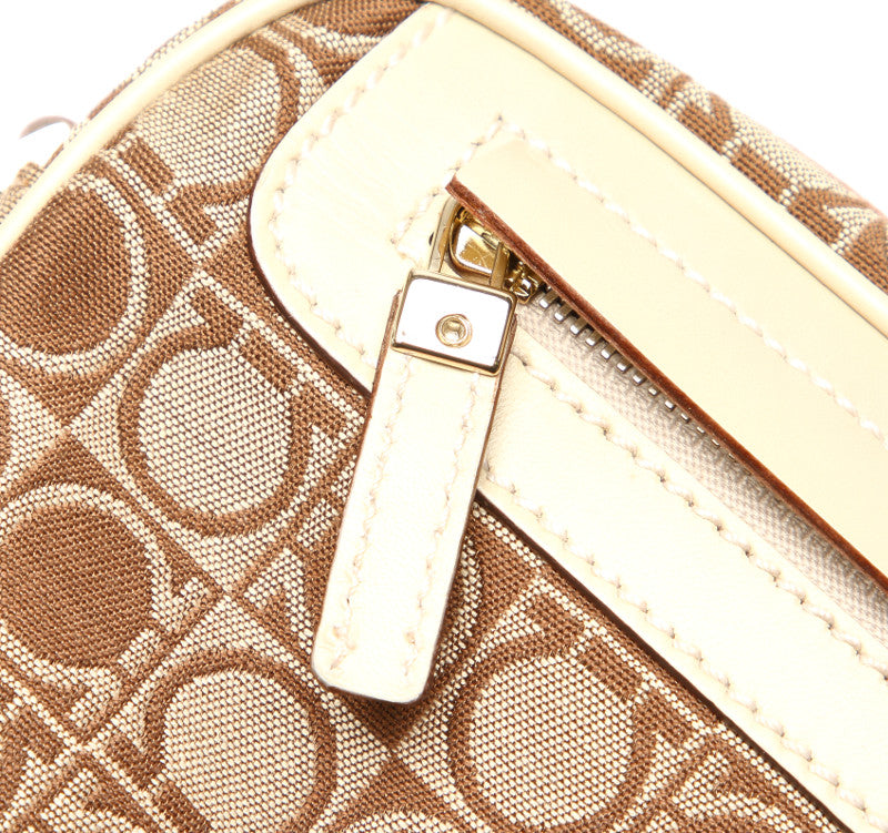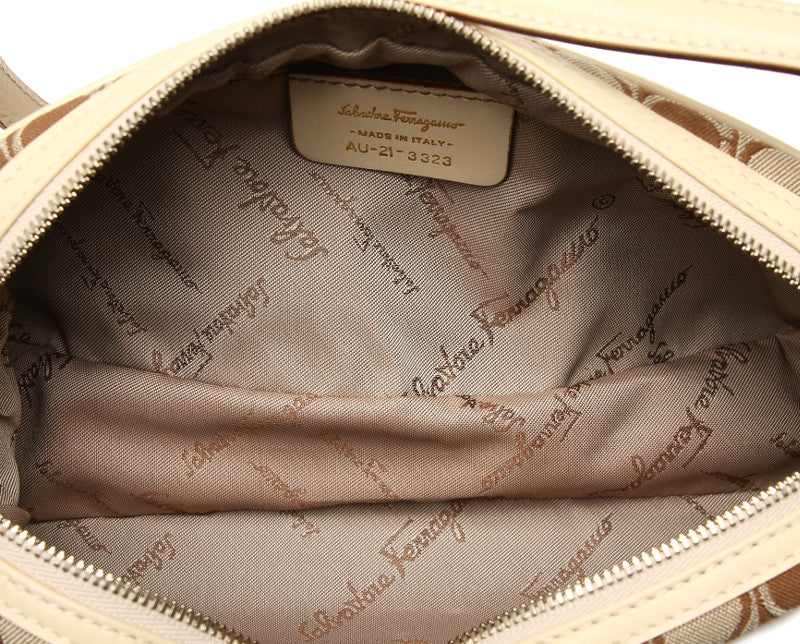 サルヴァトーレフェラガモ ガンチーニ AU-21 3323 ベージュ ブラウン キャンバス レザー ショルダーバッグ レディース Salvatore Ferragamo 中古