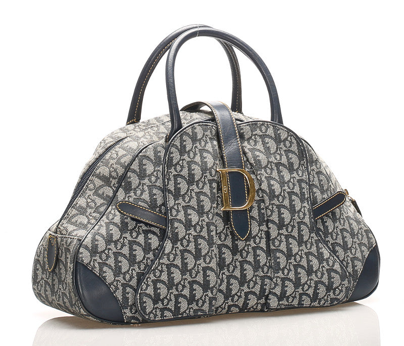 クリスチャンディオール トロッター ネイビー キャンバス レザー ハンドバッグ レディース Christian Dior 中古