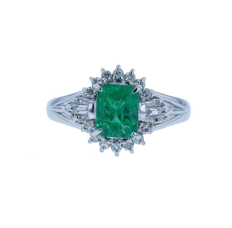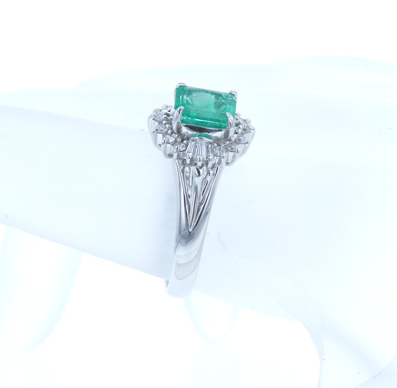 Pt900 プラチナ エメラルド1.24ct ダイヤ0.28ct リング 指輪 レディース 11.5号 【中古】