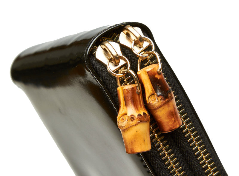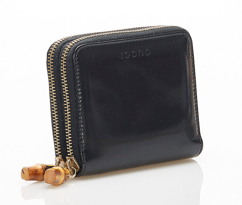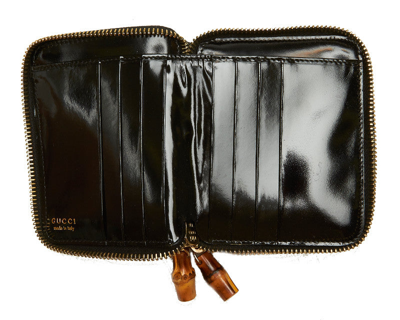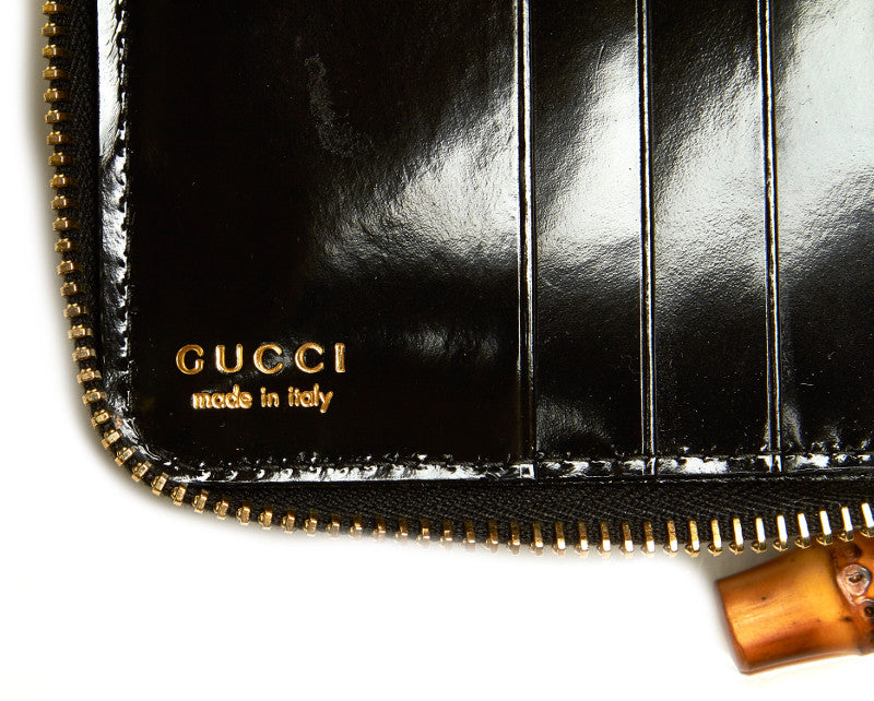 グッチ バンブー 035 1408 1919 ブラック パテントレザー 二つ折り財布 レディース GUCCI 中古