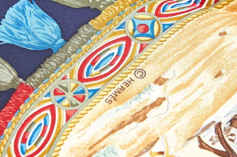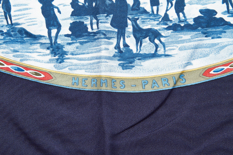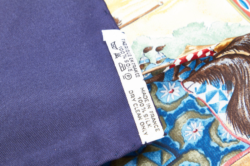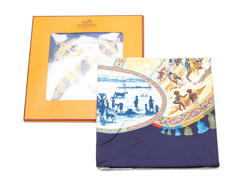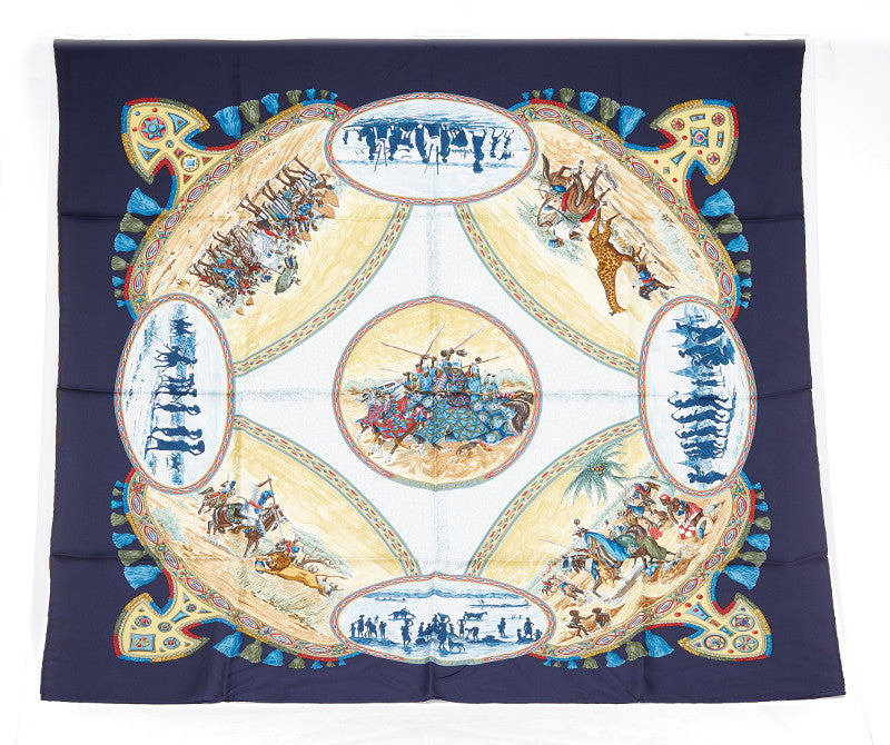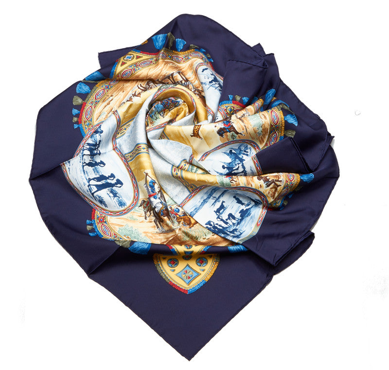 カレ90 CAVALIERS PEULS プール族の騎手 ブルー シルク スカーフ レディース 中古