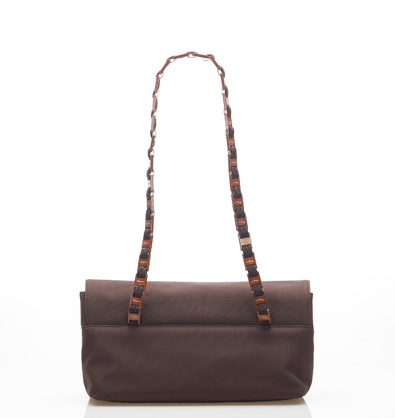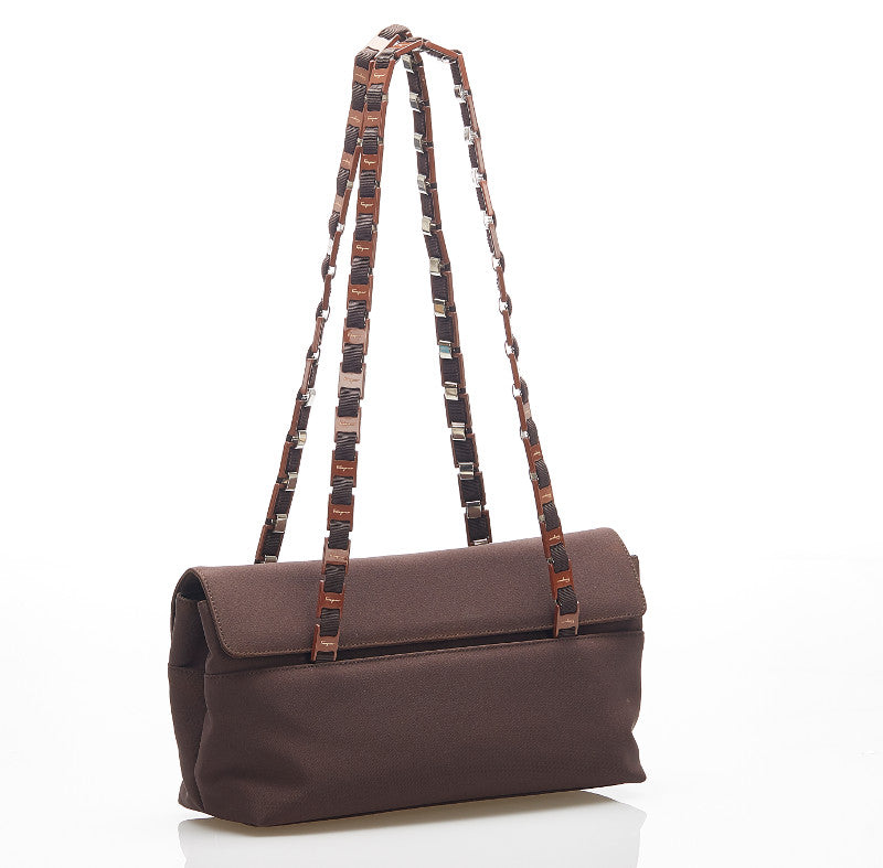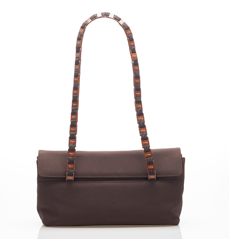 サルヴァトーレフェラガモ ヴァラ AU-21 8804 ブラウン ナイロン 肩掛け ショルダーバッグ レディース Salvatore Ferragamo 中古