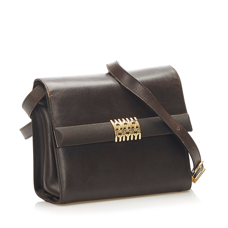 サルヴァトーレフェラガモ ガンチーニ AQ21 5713 ブラウン レザー 斜め掛け ショルダーバッグ レディース Salvatore Ferragamo 中古