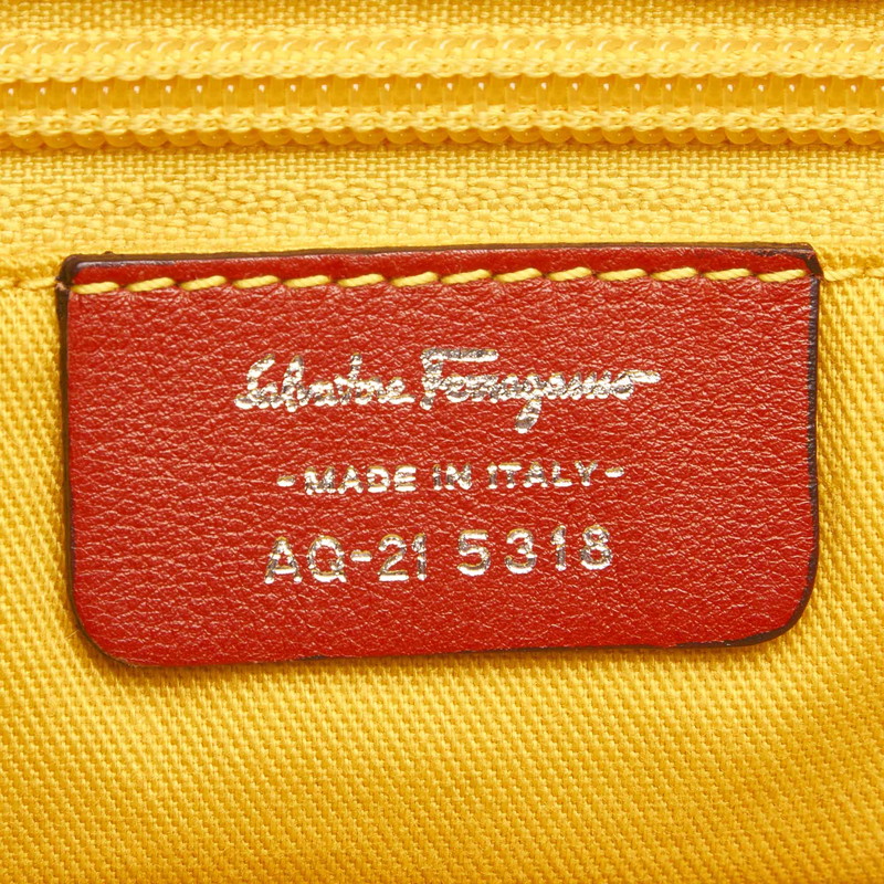 サルヴァトーレフェラガモ ガンチーニ AQ-21 5318 オレンジ キャンバス レザー ハンドバッグ ユニセックス Salvatore Ferragamo 中古