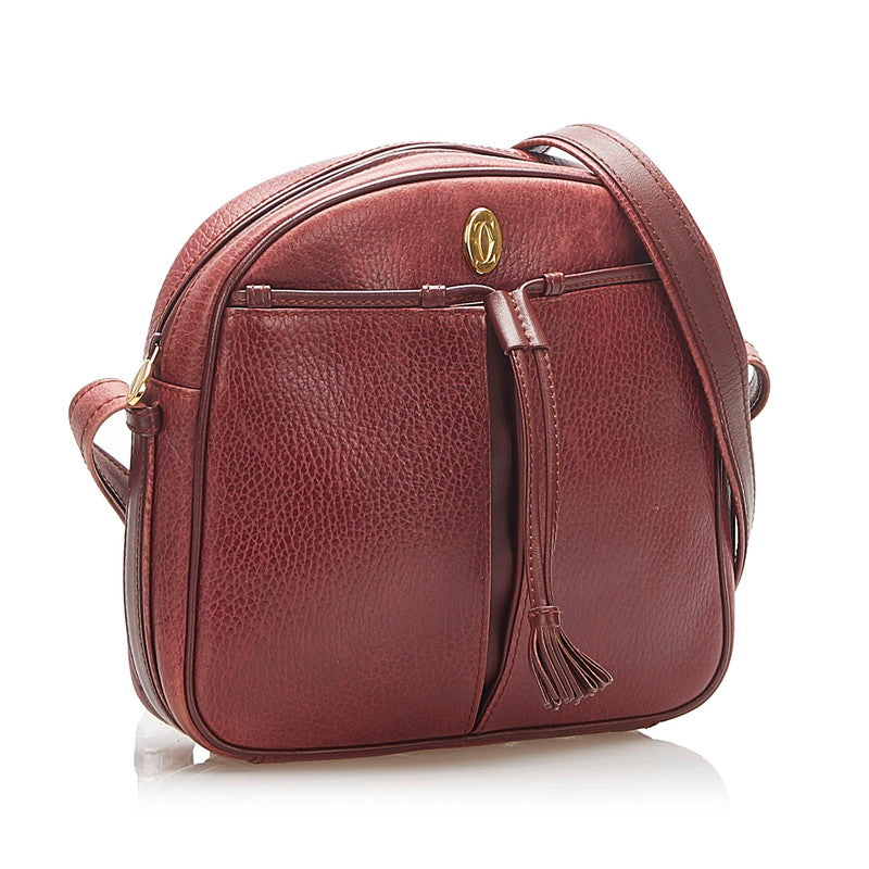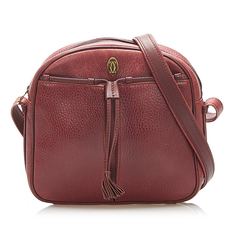 カルティエ ワインレッド レザー ショルダーバッグ レディース CARTIER 中古