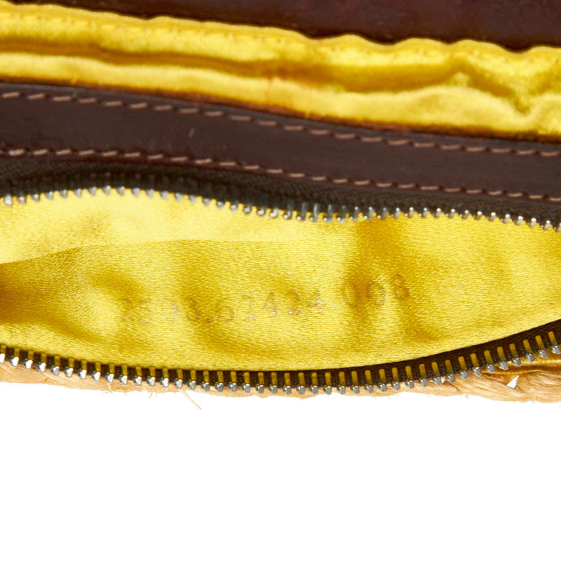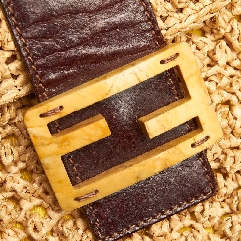 フェンディ マンマバケット イエロー ブラウン ストロー レザー ショルダーバッグ レディース FENDI 中古