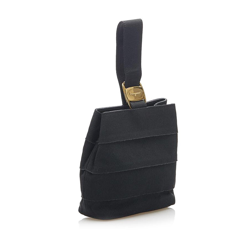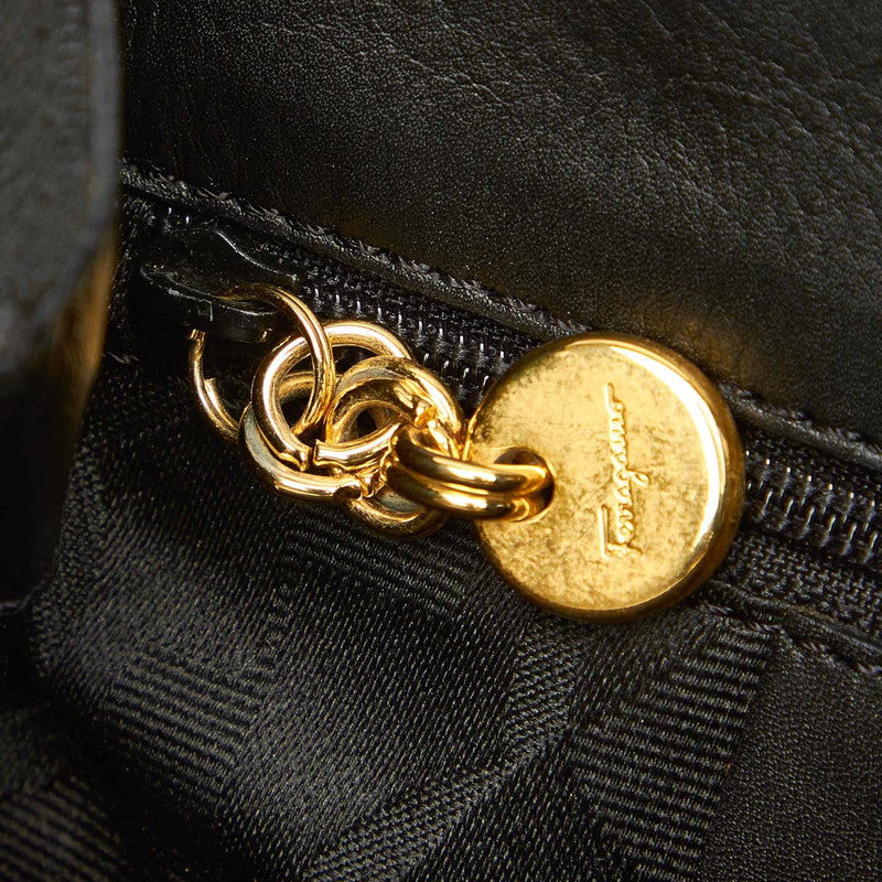 サルヴァトーレフェラガモ ヴァラ ティアード AU-21 5670 ブラック キャンバス ハンドバッグ レディース Salvatore Ferragamo 中古