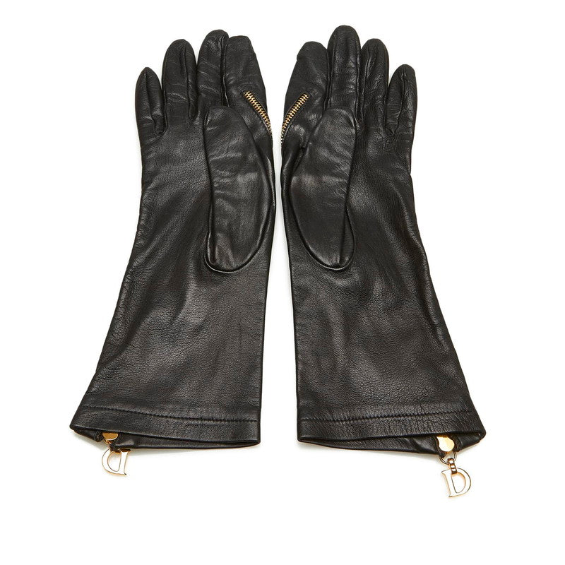 クリスチャンディオール Dロゴ ブラック レザー 手袋 レディース Christian Dior 中古