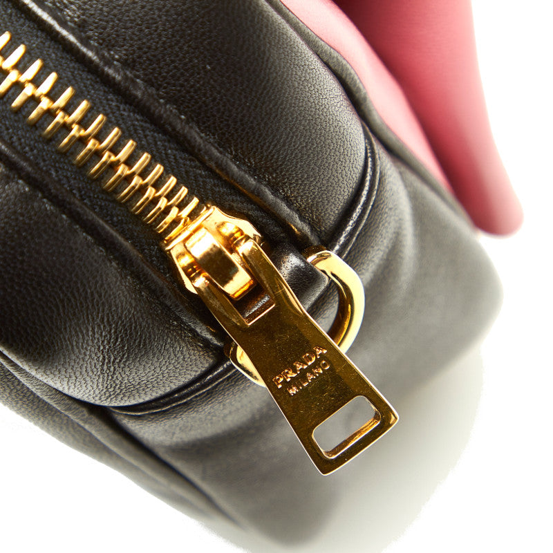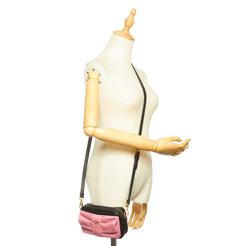 プラダ リボン BP0166 ブラック ピンク レザー 斜め掛け ショルダーバッグ レディース PRADA 中古