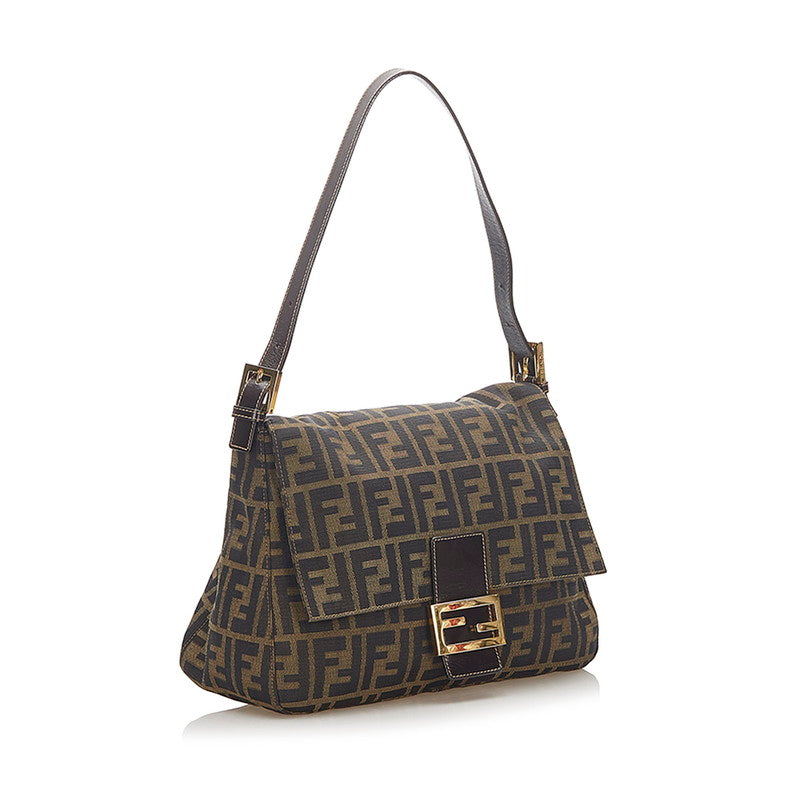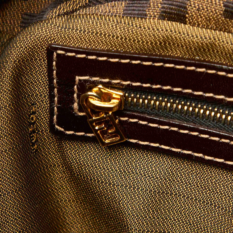 フェンディ ズッカ マンマバケット ブラウン キャンバス レザー 肩掛け ショルダーバッグ レディース FENDI 中古