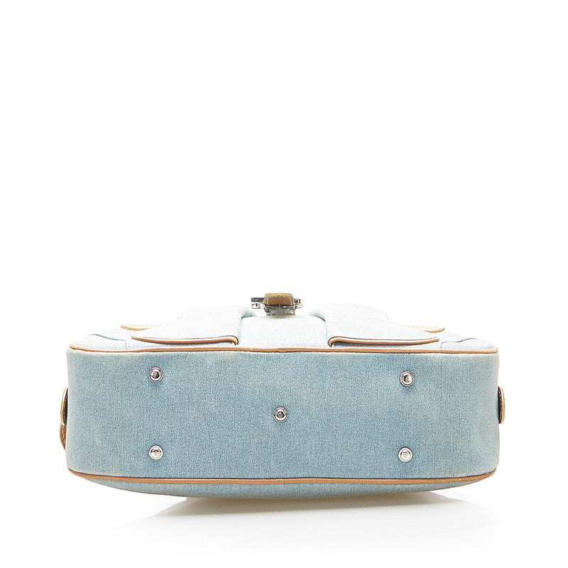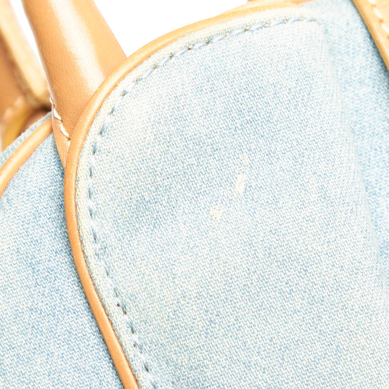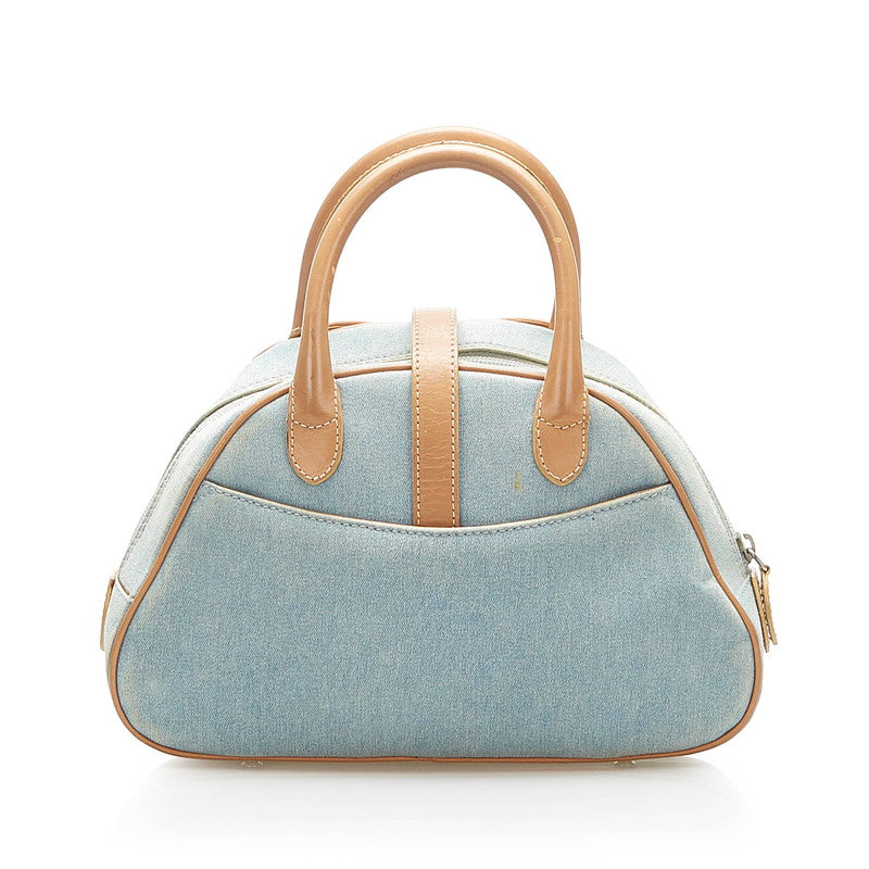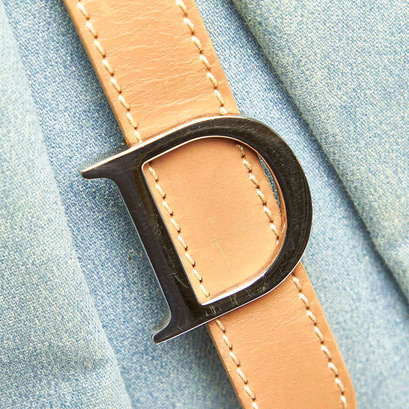 クリスチャンディオール ブルー ベージュ デニム レザー ハンドバッグ レディース Christian Dior 中古