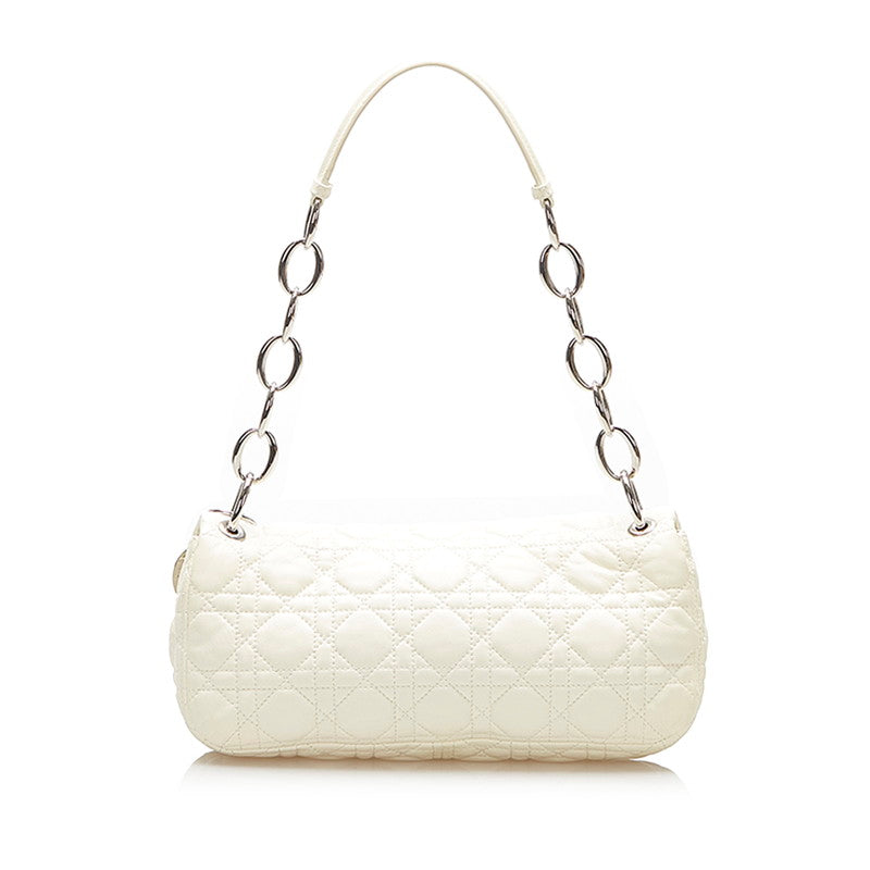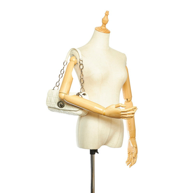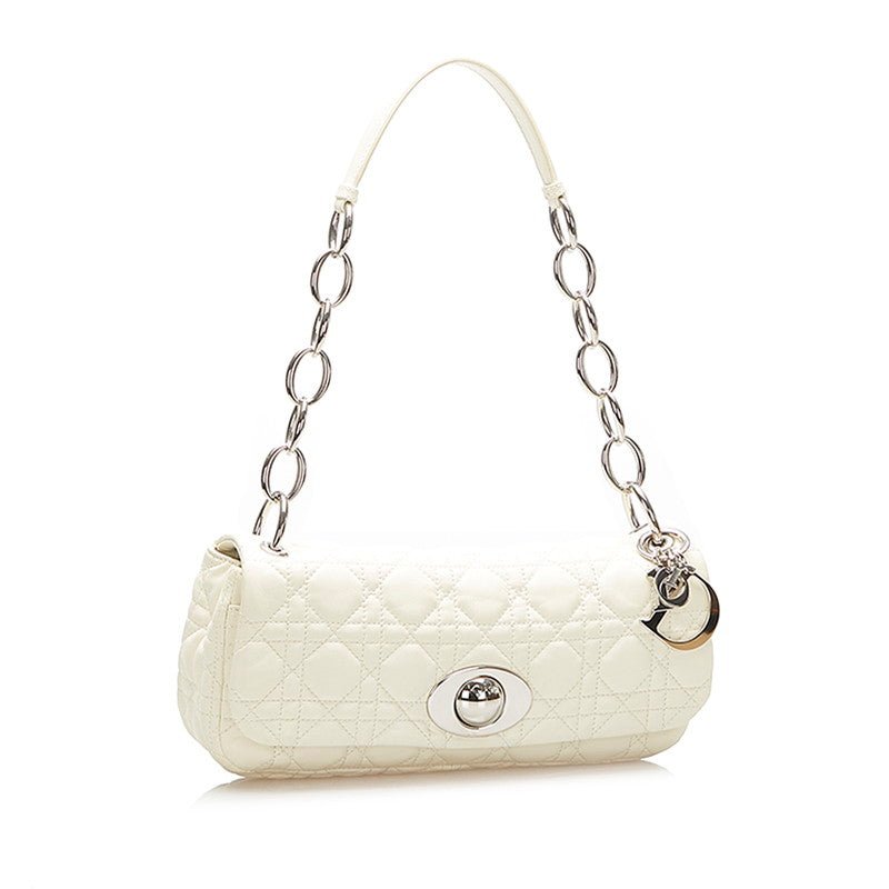 クリスチャンディオール カナージュ ホワイト レザー ショルダーバッグ レディース Christian Dior 中古