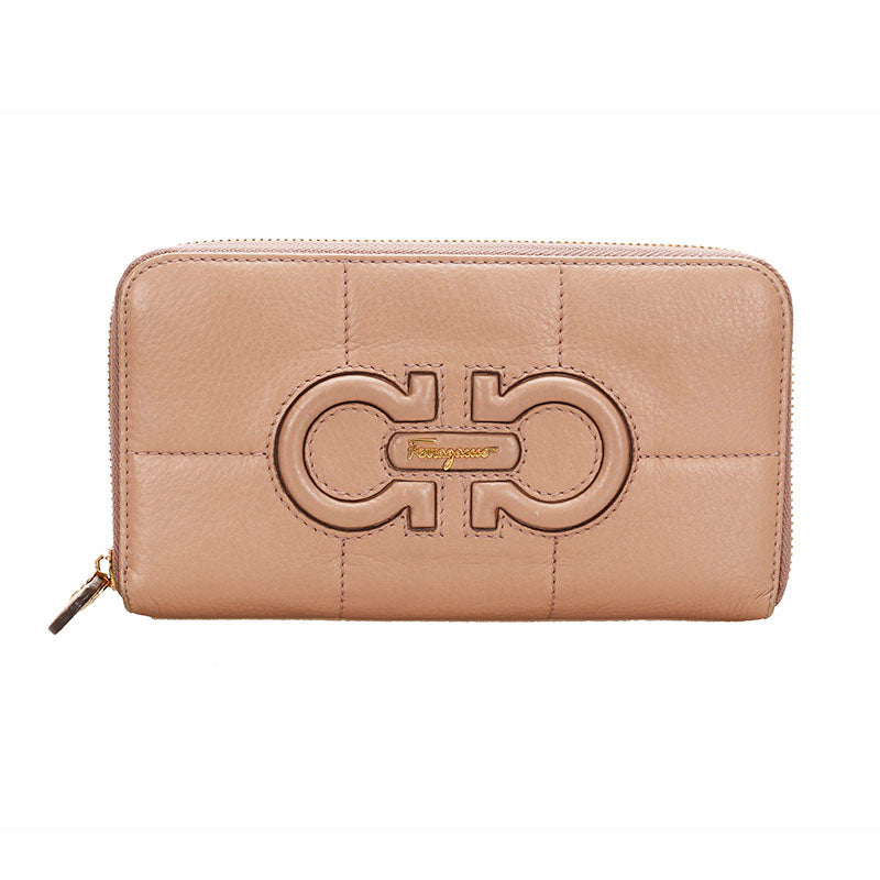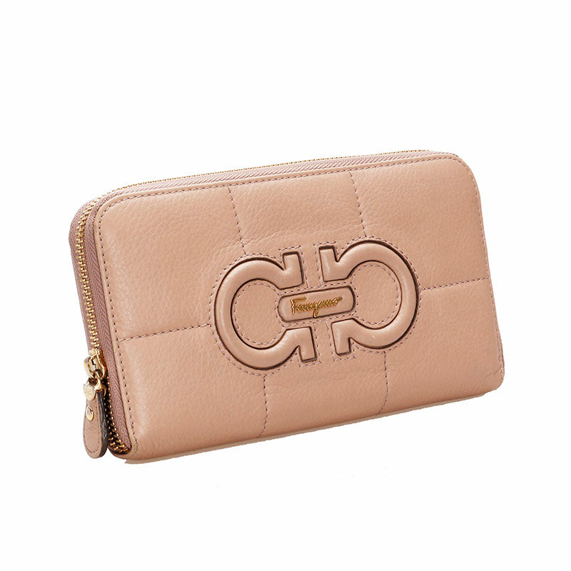 サルヴァトーレフェラガモ IY-22 B724 ピンクベージュ レザー 長財布 レディース Salvatore Ferragamo 【中古】