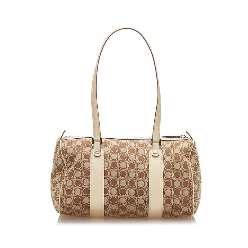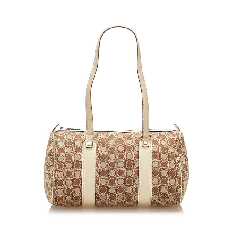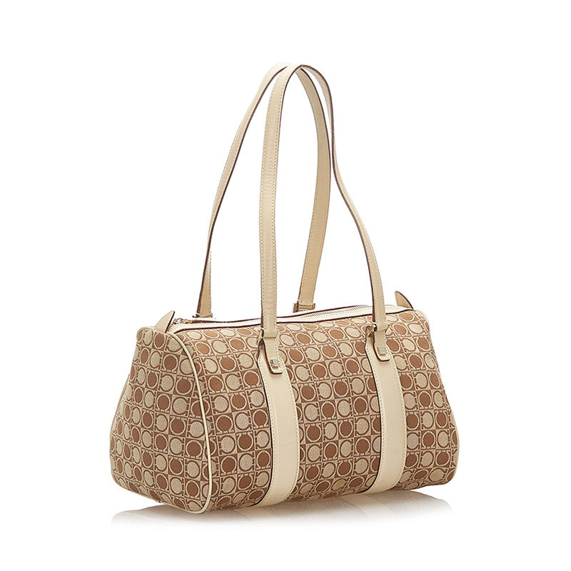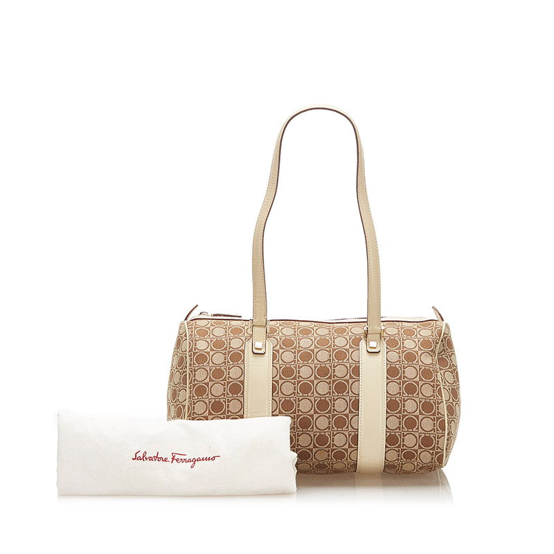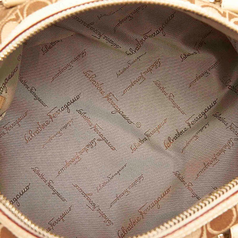 サルヴァトーレフェラガモ ガンチーニ AU21/3341 ベージュ キャンバス レザー ボストンバッグ レディース Salvatore Ferragamo 中古