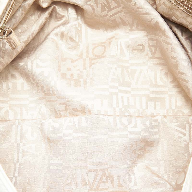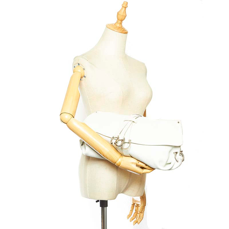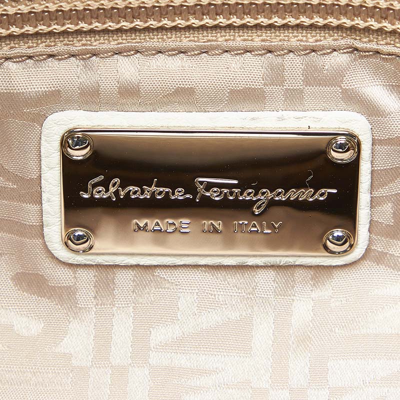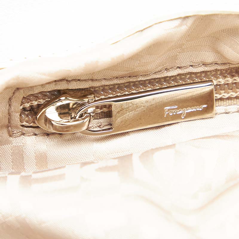 サルヴァトーレフェラガモ ガンチーニ ホワイト レザー クラッチバッグ レディース Salvatore Ferragamo 【中古】
