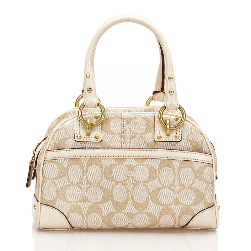 コーチ ヘリテージ ストライプ スモール ドーム サッチェル 13194 アイボリー ベージュ PVC レザー ハンドバッグ レディース COACH 【中古】
