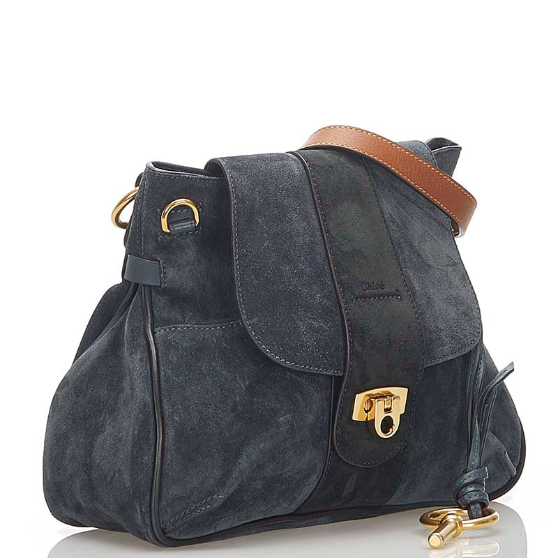 クロエ ネイビー ブラウン スウェード レザー ショルダーバッグ レディース Chloe 【中古】