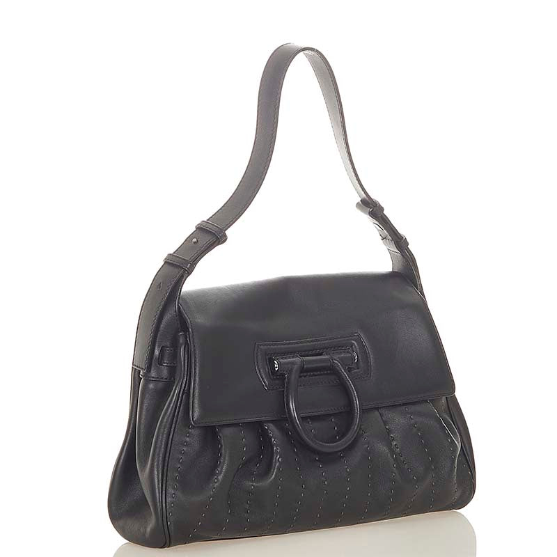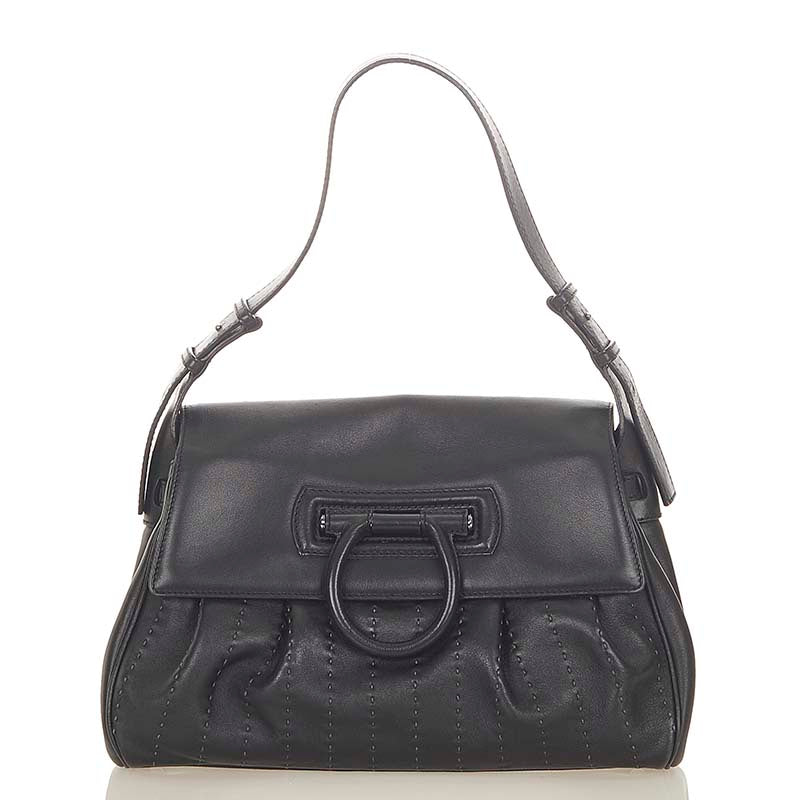 サルヴァトーレフェラガモ ガンチーニ BW-21 4845 ブラック レザー 肩掛け ショルダーバッグ レディース Salvatore Ferragamo 【中古】