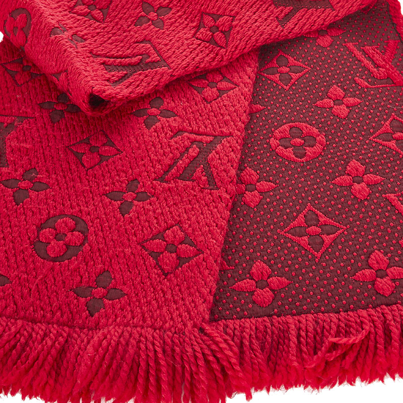 ルイ ヴィトン モノグラム エシャルプ ロゴマニア M72432 レッド ウール シルク マフラー レディース LOUIS VUITTON 【中古】