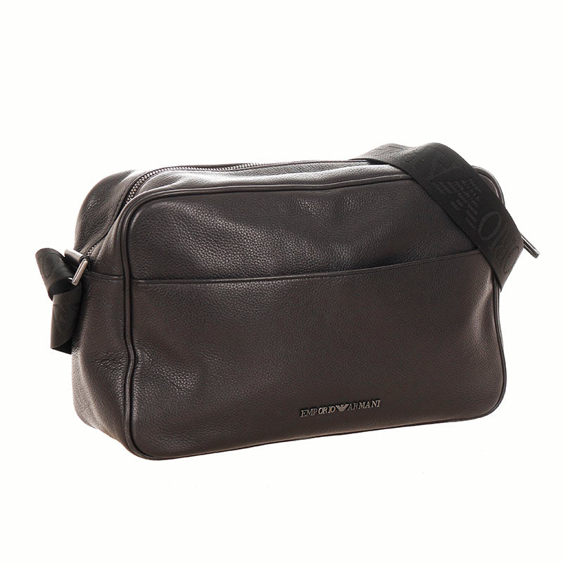 エンポリオ アルマーニ ブラック レザー ショルダーバッグ メンズ Emporio Armani 【中古】