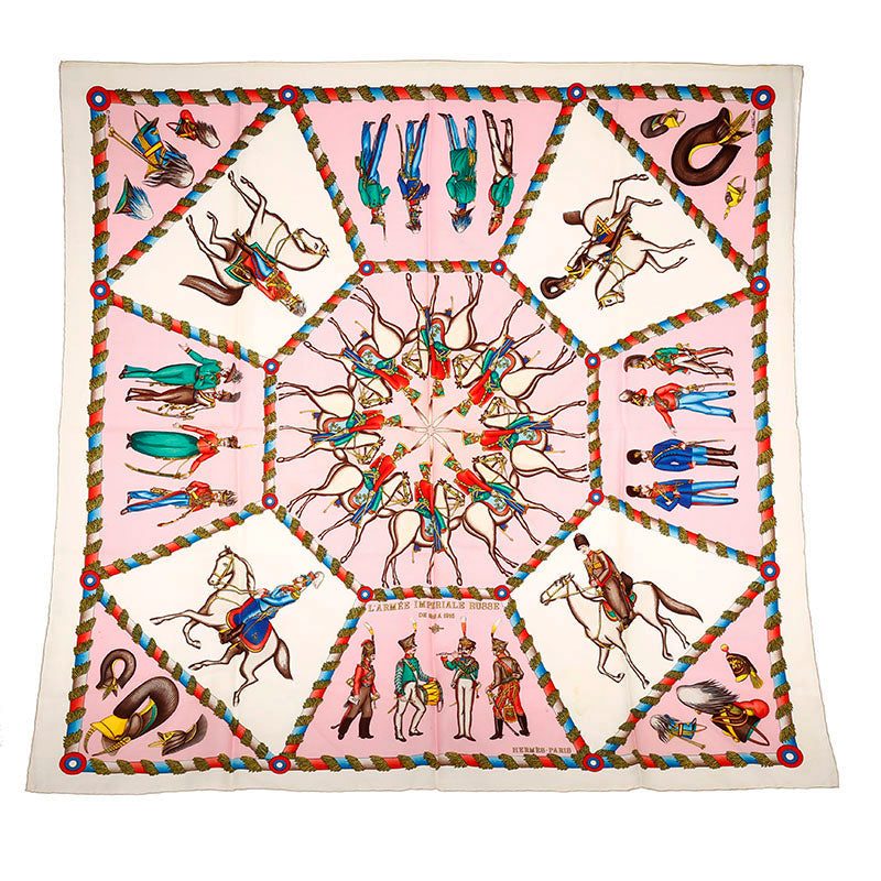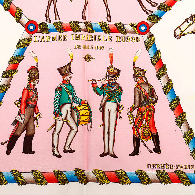 エルメス カレ90 L’ARMEE IMPERIALE RUSSE ロシア軍事博物館 ピンク マルチ シルク スカーフ レディース HERMES 【中古】