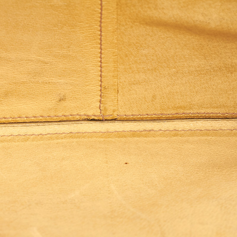 金具にキズ・クスミ、外側の所々に目立つ点々としたヨゴレ・シミ・スレ、底に角スレ、内側に目立つヨゴレ・スレ・ペン跡はありますが、使用に問題はございません。 |