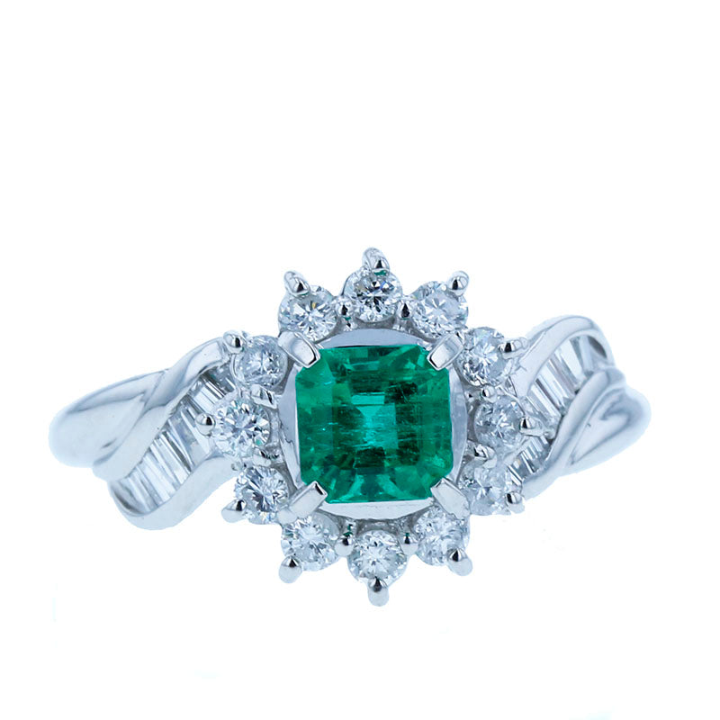 Pt900 プラチナ エメラルド0.59ct ダイヤ0.58ct リング 指輪 レディース 12号 【中古】