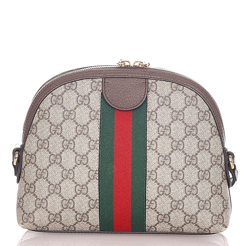 グッチ オフィディア GGスプリーム ベージュ ブラウン PVC レザー ショルダーバッグ レディース GUCCI 【中古】
