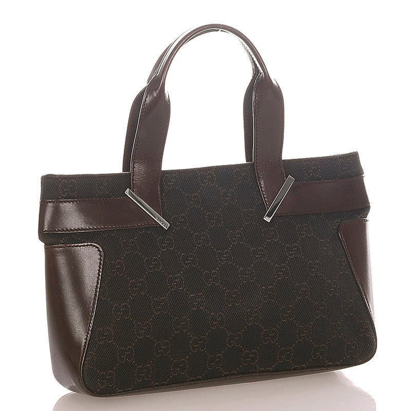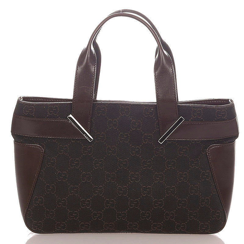 グッチ ジャガード レザーバッグ 3525 73984 ブラウン レザー キャンバス ハンドバッグ レディース GUCCI 【中古】