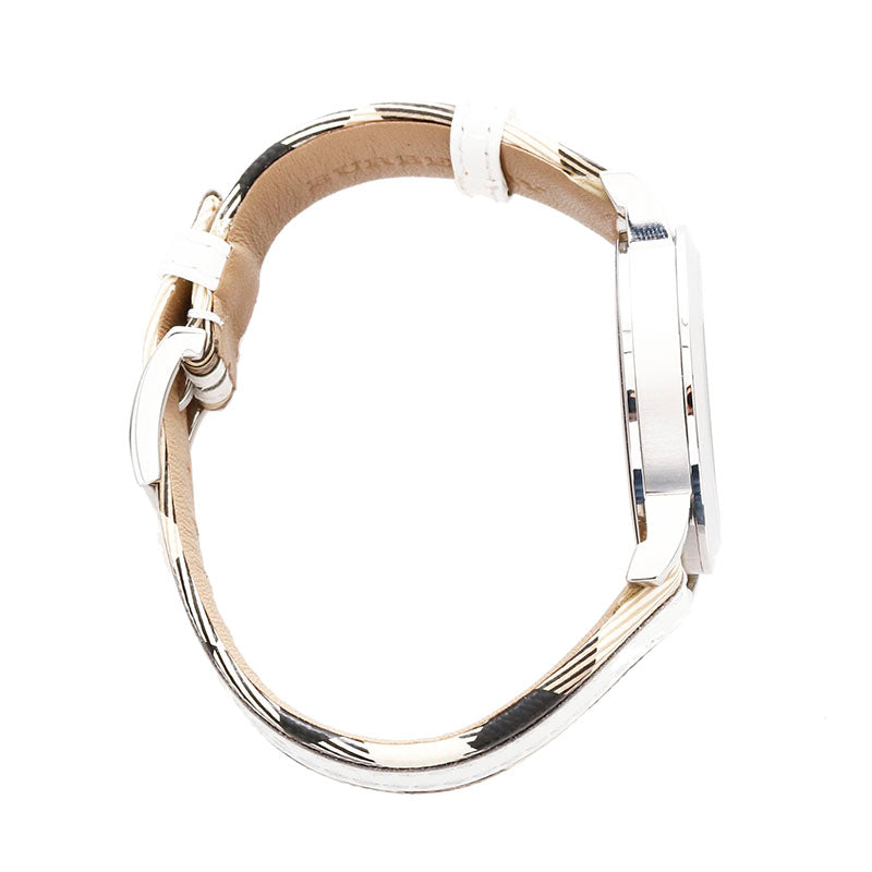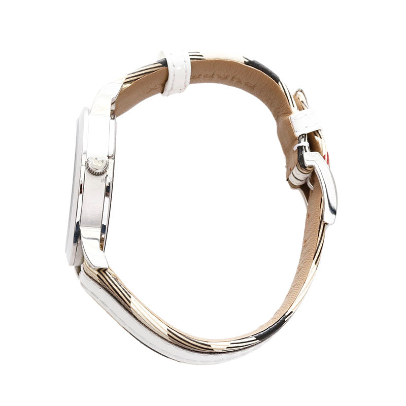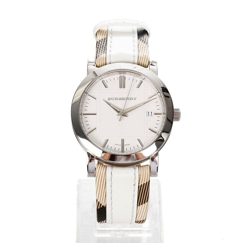 バーバリー 12620 ベージュ ステンレススチール ナイロン 腕時計 レディース BURBERRY クオーツ ホワイト文字盤 【中古】