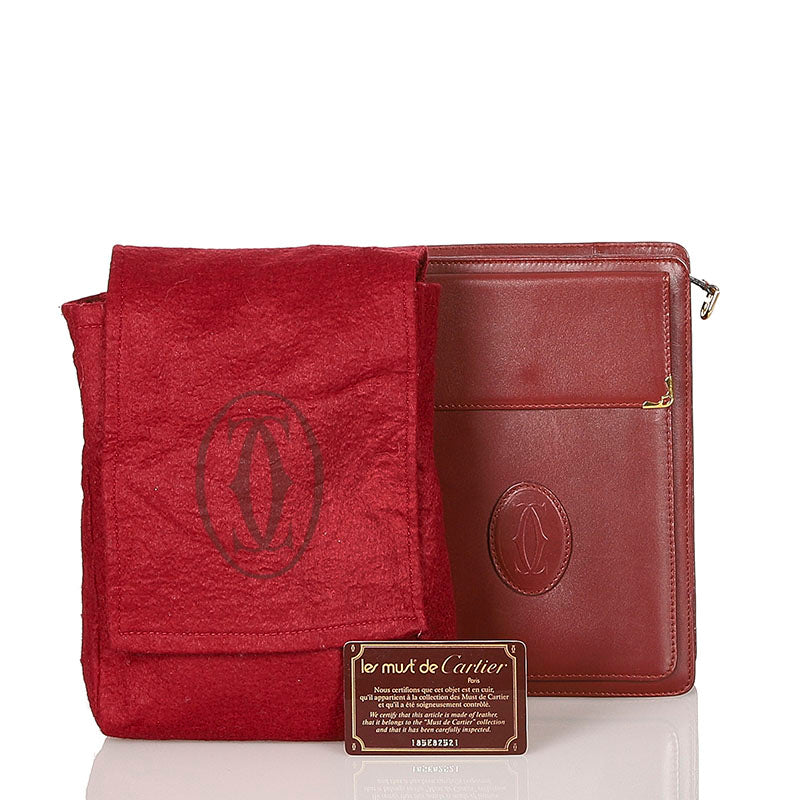 カルティエ マスト ボルドー レザー セカンドバッグ メンズ CARTIER 【中古】