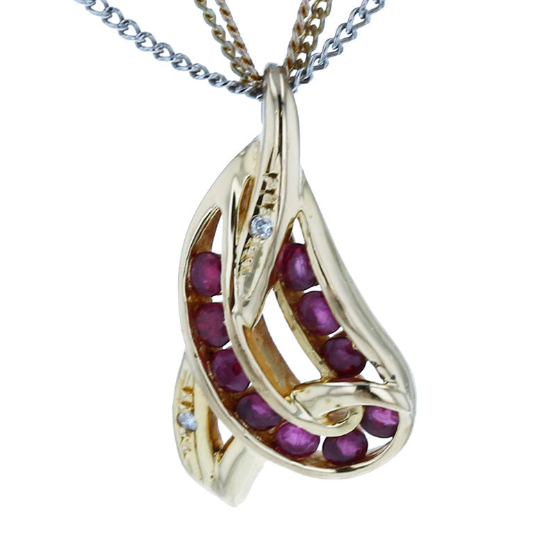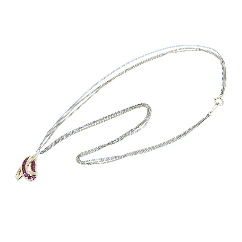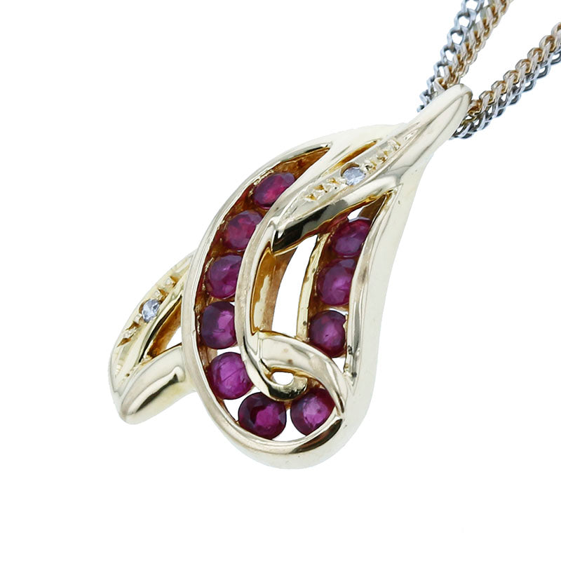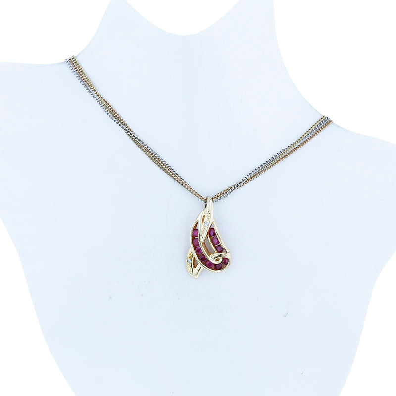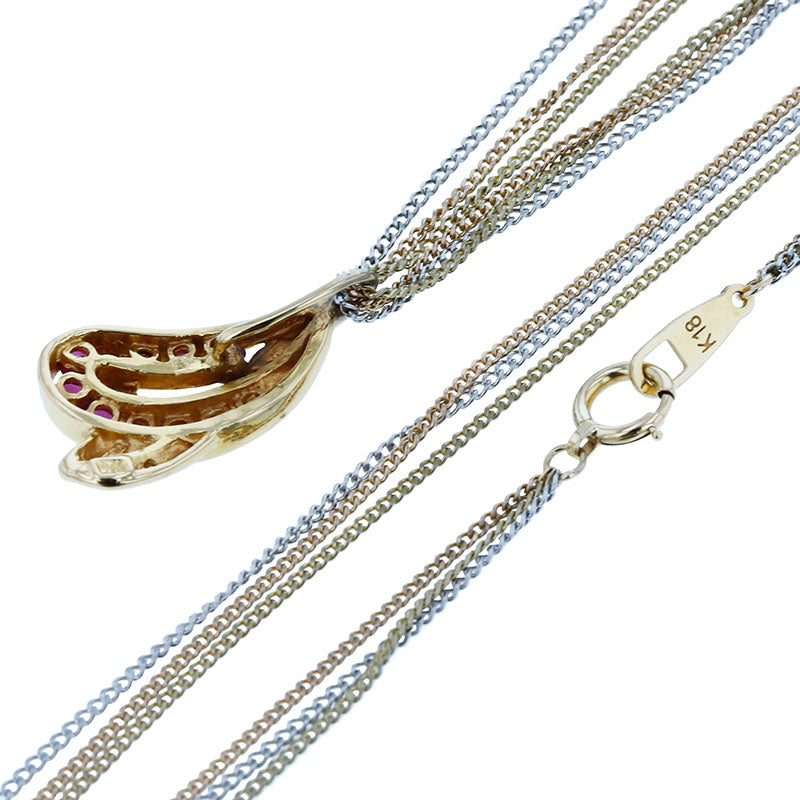 K18YG イエローゴールド Pt850 プラチナ コンビ ルビー ダイヤ 三連 ネックレス レディース 【中古】