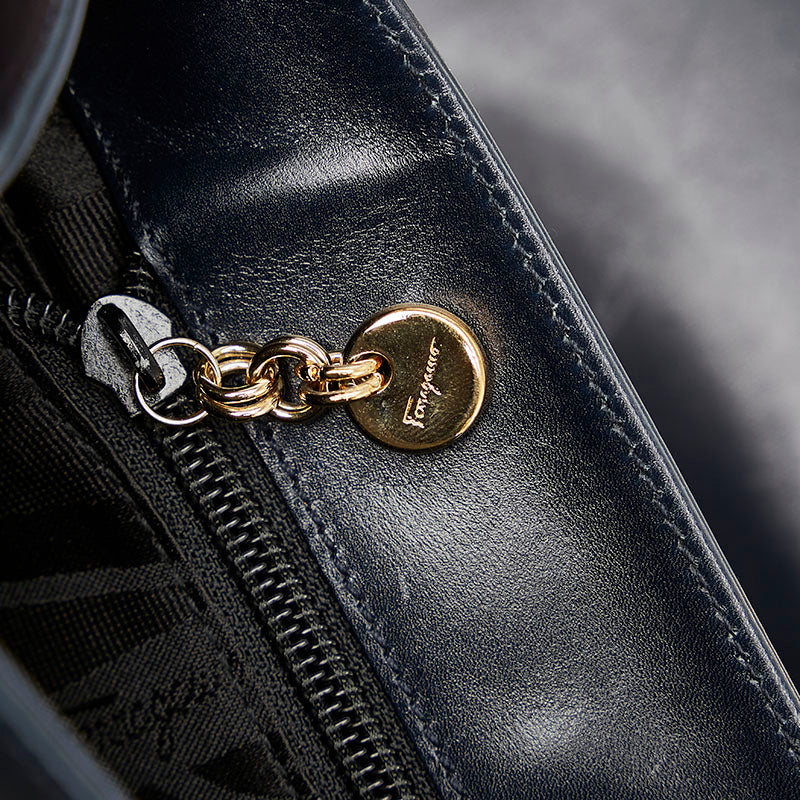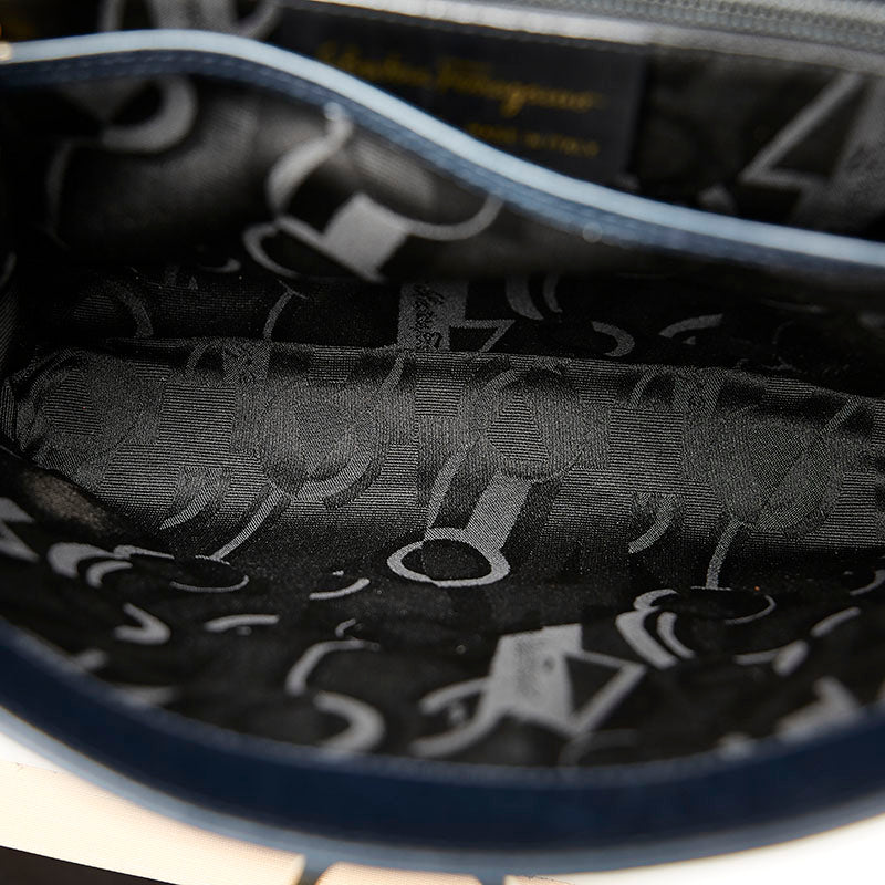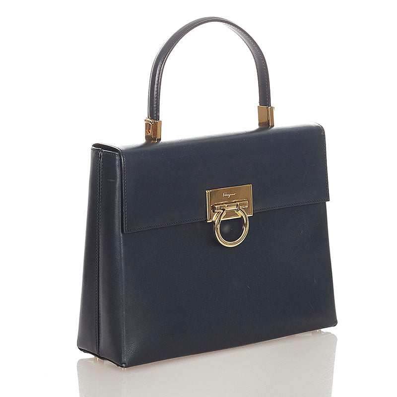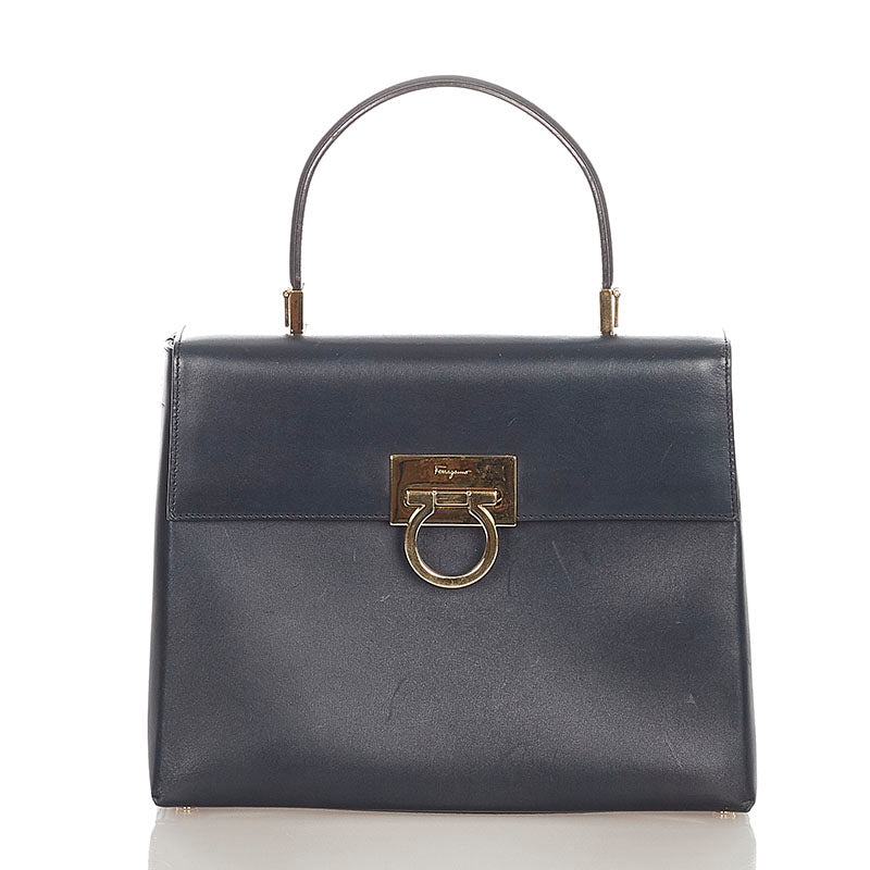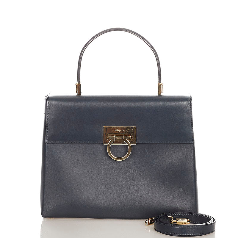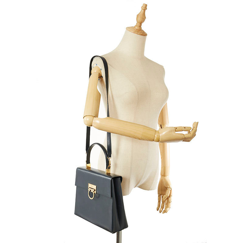 サルヴァトーレフェラガモ ガンチーニ AF-21 8657 ダークネイビー レザー ハンドバッグ ショルダーバッグ 2way レディース Salvatore Ferragamo 【中古】